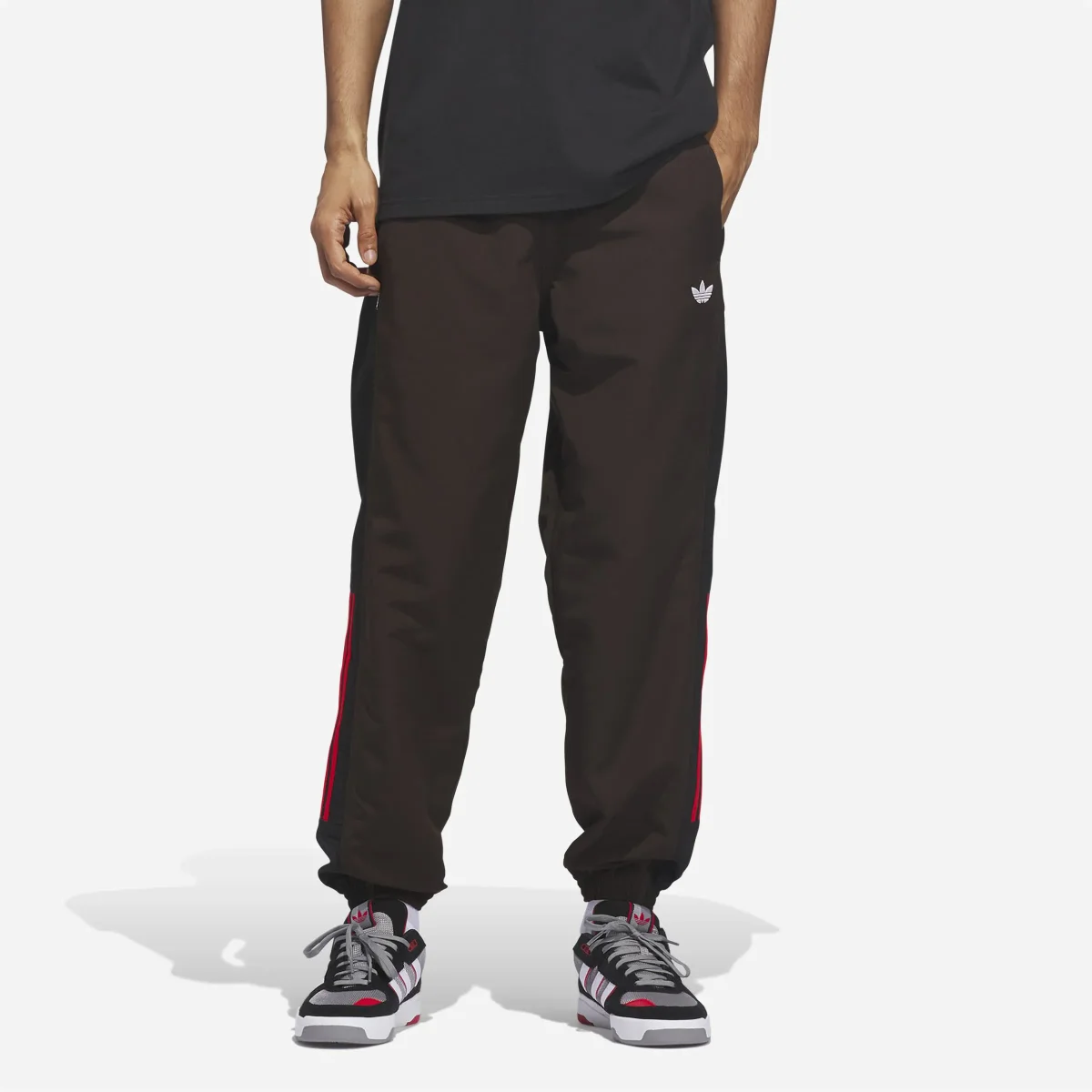 Le Adidas Skateboarding Gatsele Track Pant en coloris Aurora Coffee est la pièce maîtresse pour un look skate aux tons chauds. Conçu pour s’associer à la veste assortie ou pour être porté en solo, ce pantalon de survêtement combine une esthétique sombre et sophistiquée avec des éclats de rouge vif, rappelant les tenues de sport techniques des années 90.