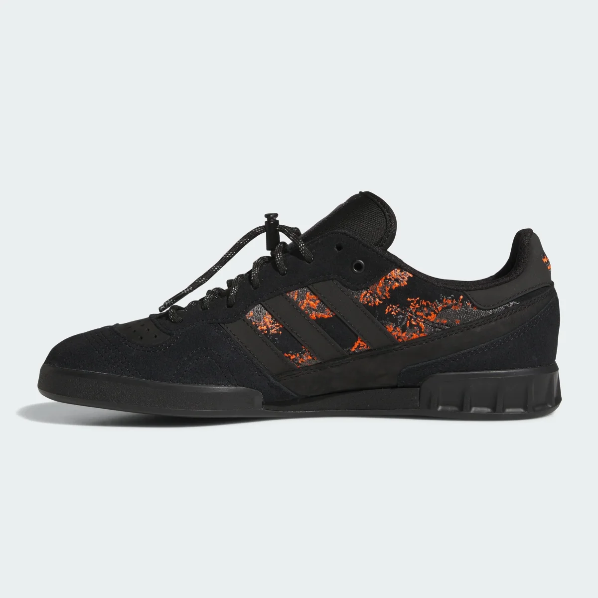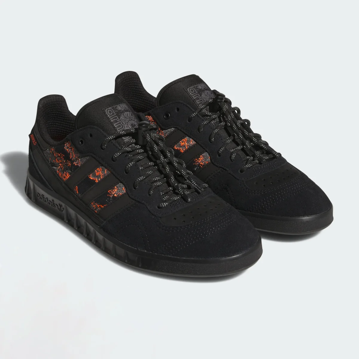 La adidas Handball Top x Mike Arnold fusionne l’héritage des années 80 avec l’esthétique contemporaine du skate. Cette collaboration exclusive revisite un classique du handball indoor à travers le regard du skateur britannique Mike Arnold. Confectionnée en suède noir premium, la chaussure arbore des motifs brodés orange vif qui capturent l’essence urbaine. La semelle extérieure texturée assure une adhérence précise sur la planche, tandis que la semelle intermédiaire moulée procure stabilité et amorti. La signature ARNOLD brodée au talon et le branding adidas discret complètent cette création qui célèbre l’équilibre entre héritage sportif et performance skate.