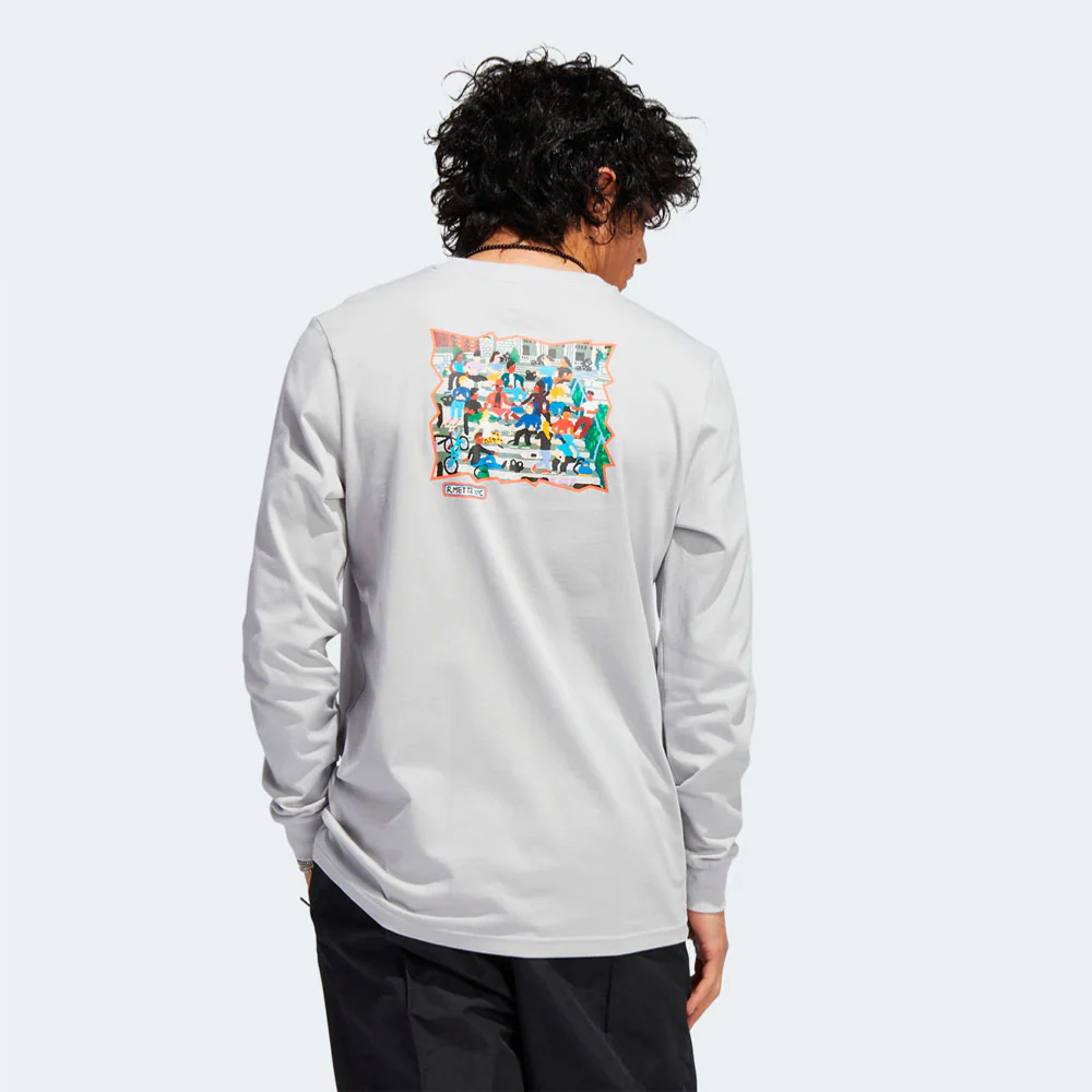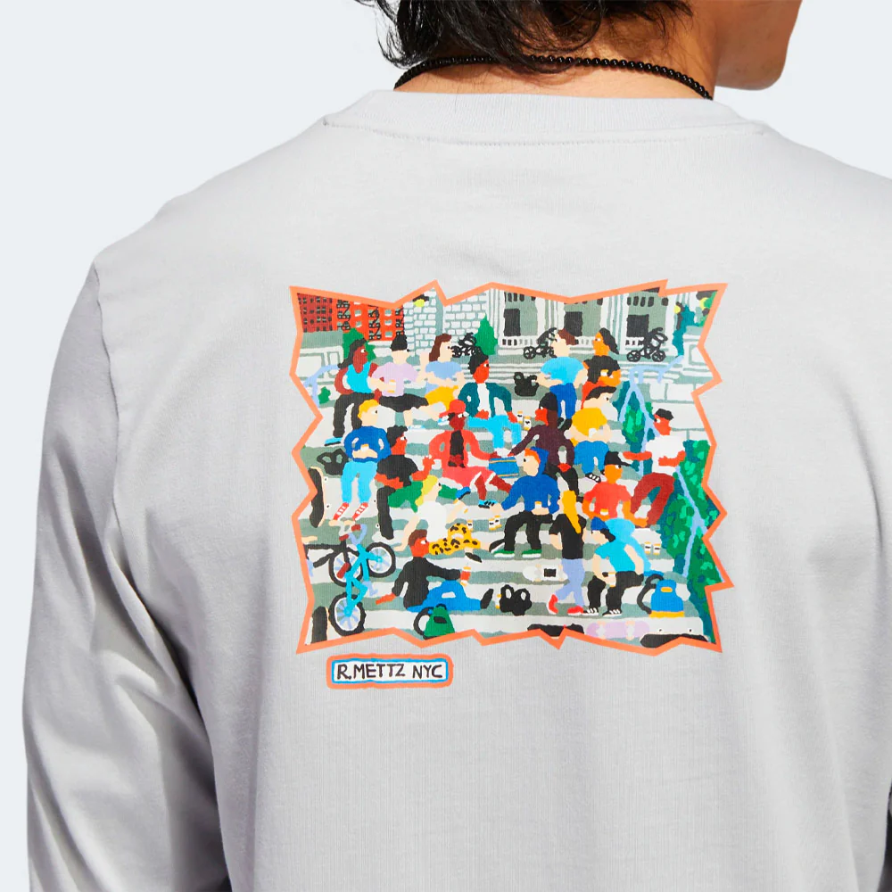 ADIDAS SKATEBOARDING x RYAN METTZ – METTZ THE STEPS LS TEE – Light Solid Grey – Multi