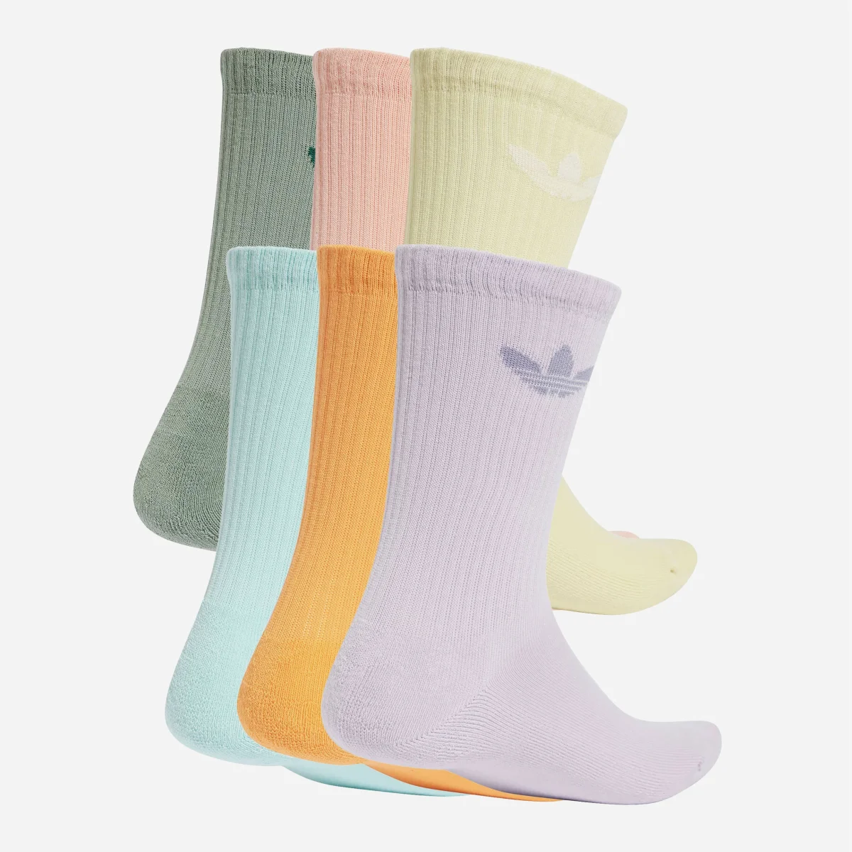 Adidas – Trefoil Crew Sock Cushion 6 Pair Pack – Silver Green / Glow Pink / Powder Yellow