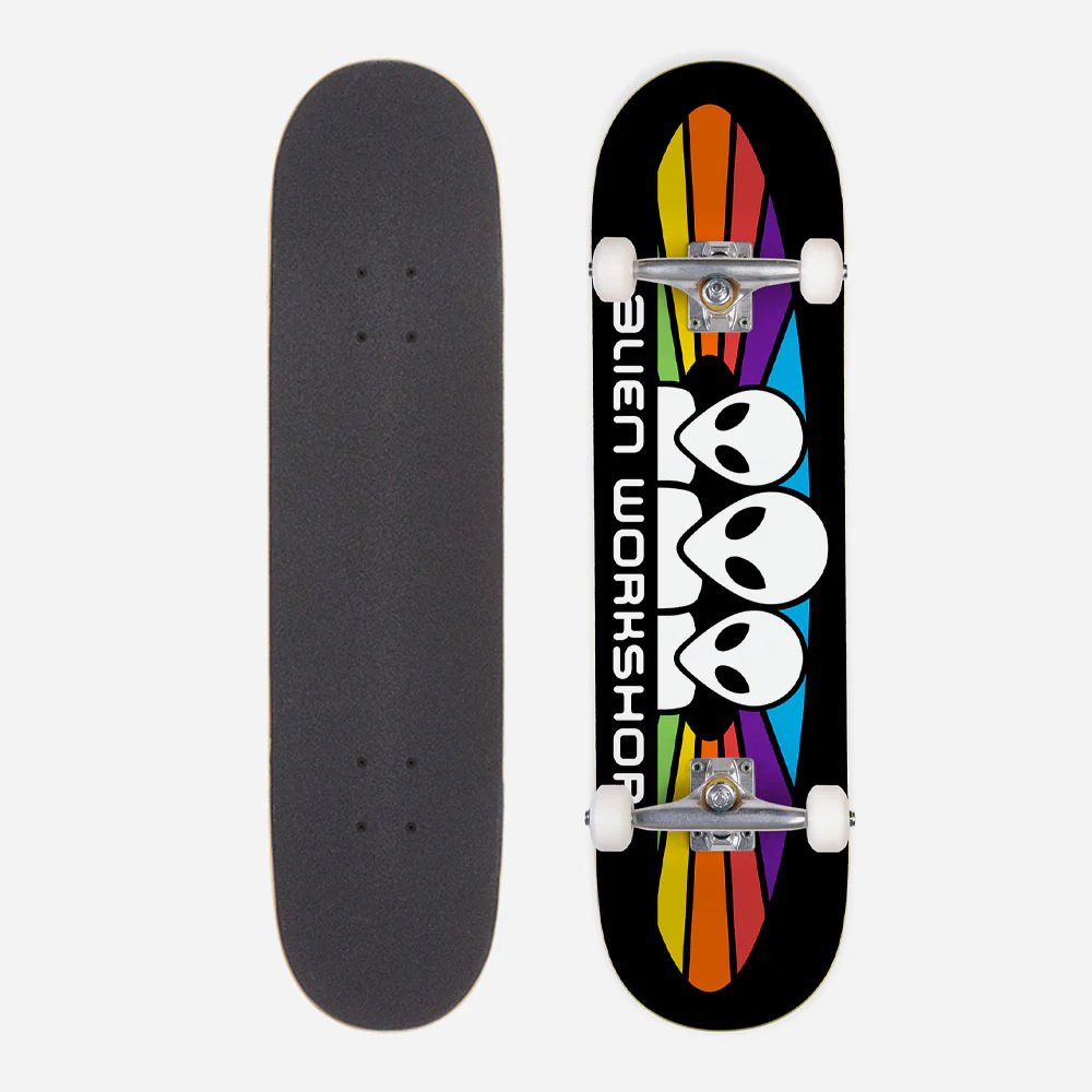 Découvrez le skateboard Alien Workshop Spectrum complète. Équipé de trucks, roues, roulements, grip et visserie, il est prêt à l’emploi pour des performances optimales. Son shape classique est idéal pour se lancer et progresser en toute confiance. Une façon parfaite de découvrir le monde du skate.