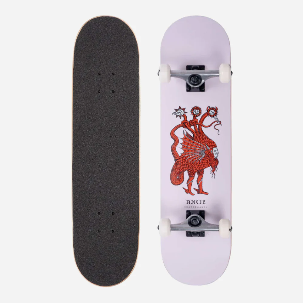 Planche de skateboard complète Antiz, prête à l’emploie, avec roues, trucks, roulements, vis et grip. Shape classique.