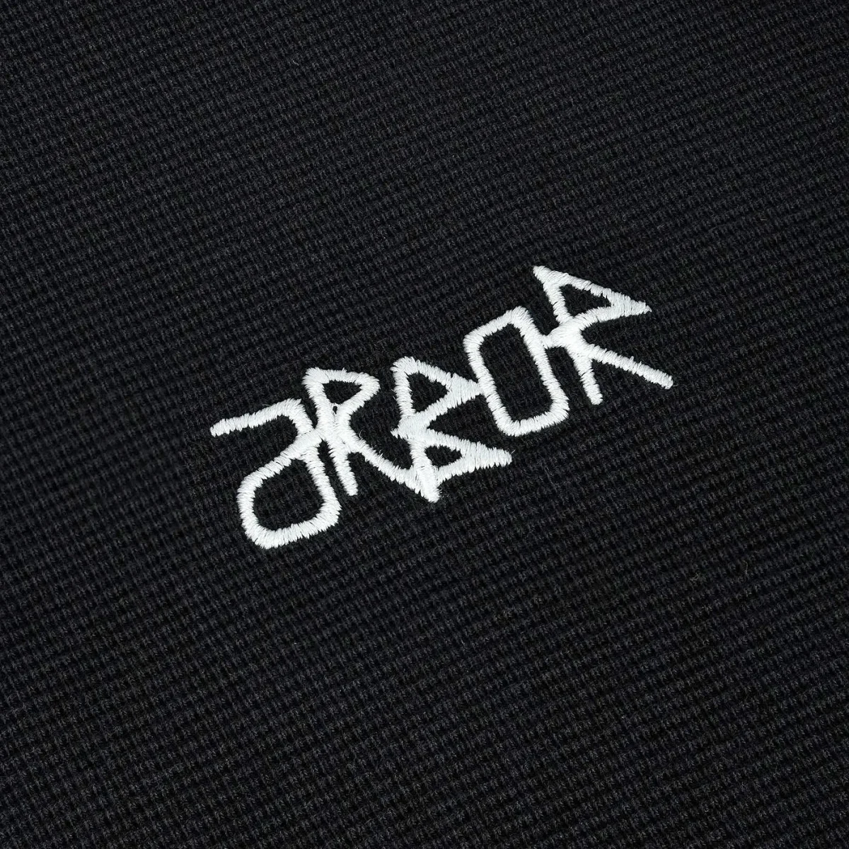 Broderie Signature : Le logo « Arbor » style graffiti est brodé en blanc contrastant sur la poitrine, ressortant parfaitement sur le relief du tissu noir.