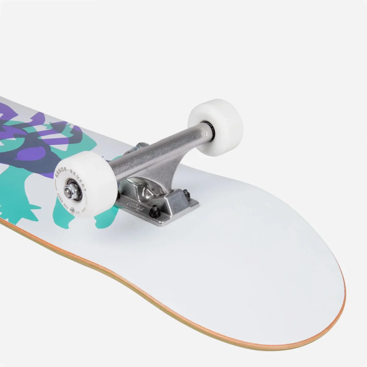 Skateboard Arbor complet. Livré monté et prêt à l’emploi avec trucks, roues, roulements, grip et visserie.