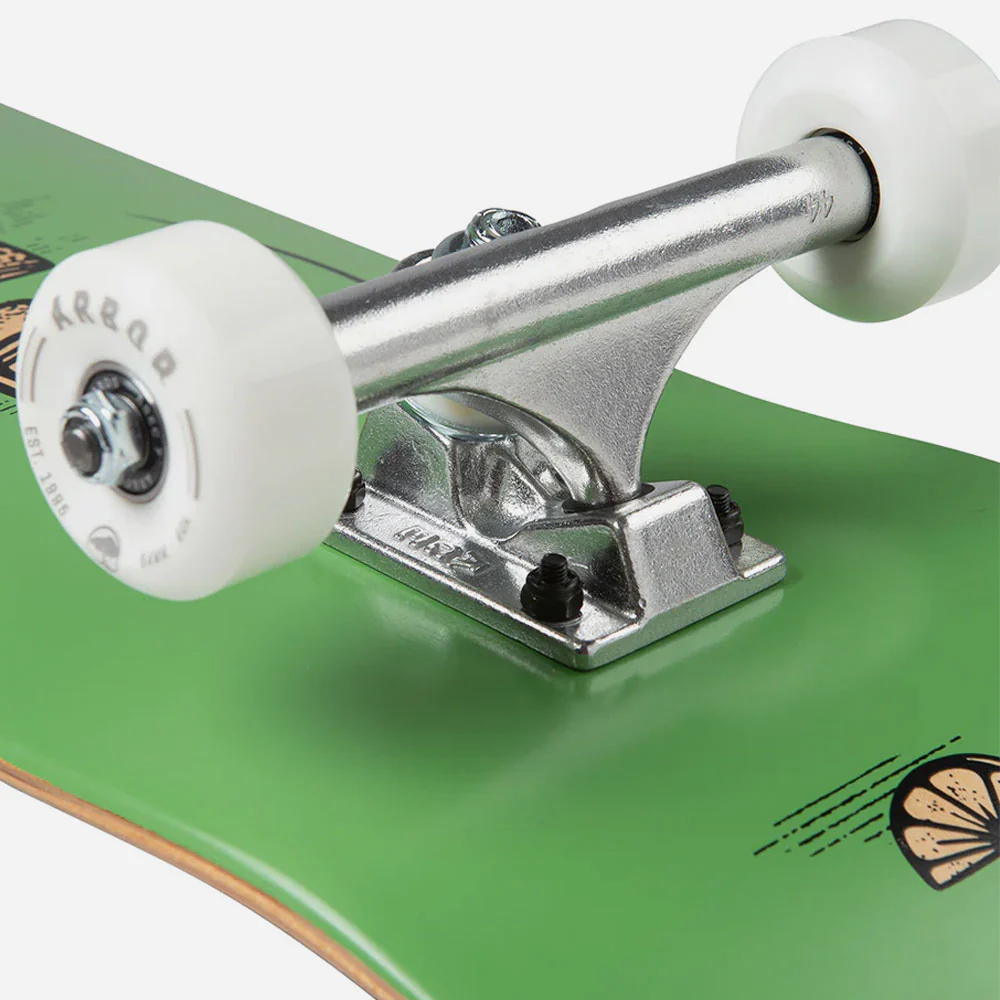 Skateboard Arbor complet. Livré monté et prêt à l’emploi avec trucks, roues, roulements, grip et visserie.
