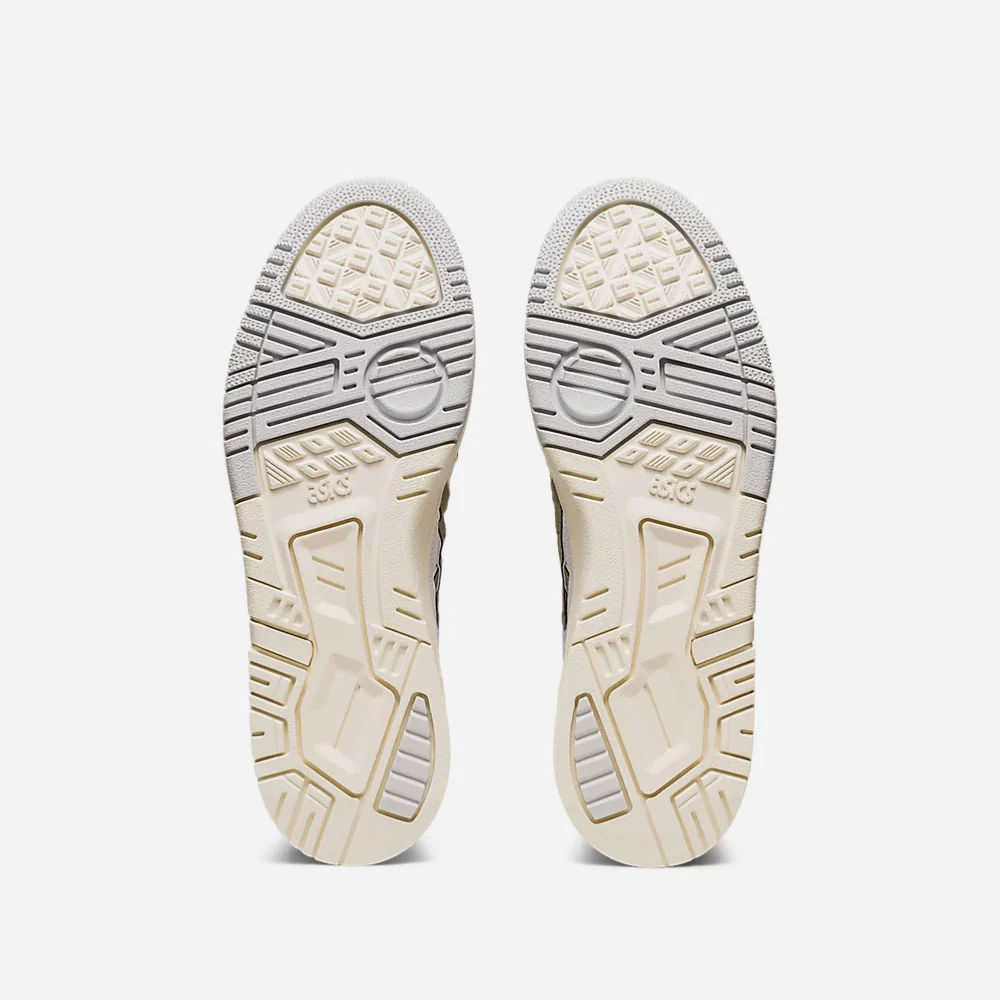 La chaussure EX89 introduite en 1989 pour la première fois et conçue à l’origine par Toshikazu Kayano revient en version lifestyle. La conception en superpositions de cuir de l’empeigne aux blocs de couleur vifs rappellent les tenues des équipe NBA de l’époque. Le motif de la semelle extérieure représente la silhouette d’une ville vue du ciel