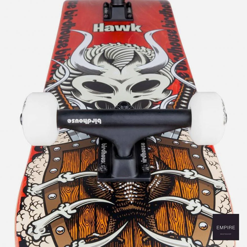 BIRDHOUSE HAWK GLADIATOR COMPLETE 8.125 » Skateboard complet, planche réalisée en bois d’érable canadien 7-plis et résine époxy, en taille 8.125 x 31.5 inch. Montée avec des trucks Birdhouse 5 », des roues Birdhouse diamètre 52mm et duro 95A, des roulement Abec 7 et un grip.
