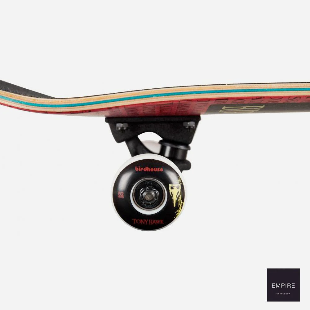 Planche de skateboard complète, réalisée en bois d’érable canadien 7-plis et résine époxy, taille 8.0 x 31.25 inch. Montée avec des trucks Birdhouse laser logo Powdercoat 5.25 », des roues Birdhouse diamètre 52mm et duro 100A SHR, des roulement Abec 7 et un grip die cut.