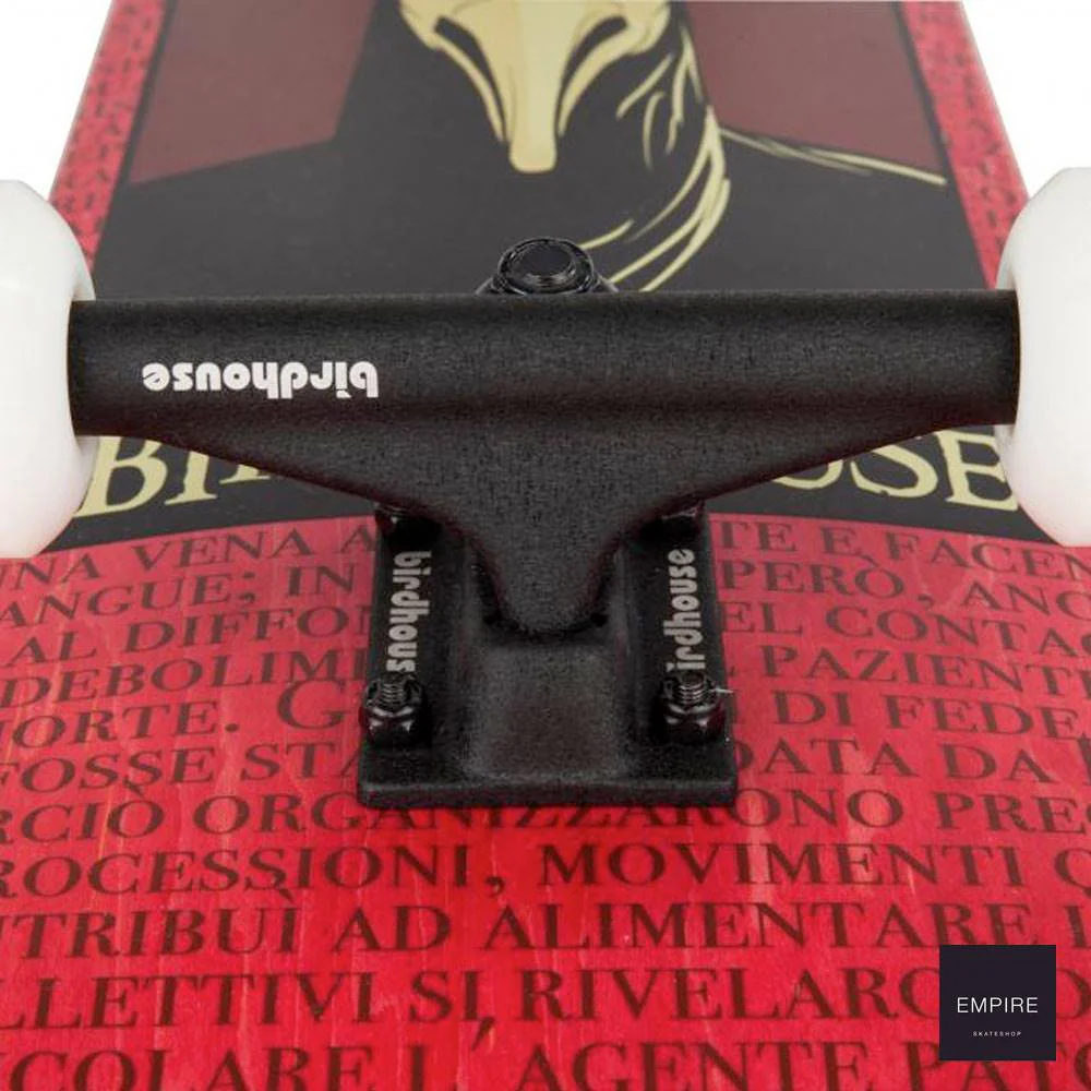 BIRDHOUSE PLAGUE DOCTOR RED COMPLETE 8.0 ». Planche de skateboard complète, réalisée en bois d’érable canadien 7-plis et résine époxy, taille 8.0 x 31.25 inch. Montée avec des trucks Birdhouse laser logo Powdercoat 5.25 », des roues Birdhouse diamètre 52mm et duro 100A SHR, des roulement Abec 7 et un grip die cut.