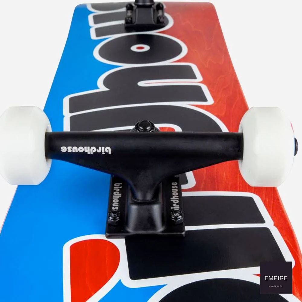 BIRDHOUSE – TOY LOGO COMPLETE – Red / BluePlanche de skateboard complète Birdhouse. Prête à l’emploi avec Trucks, roues, roulements, grip et visserie.