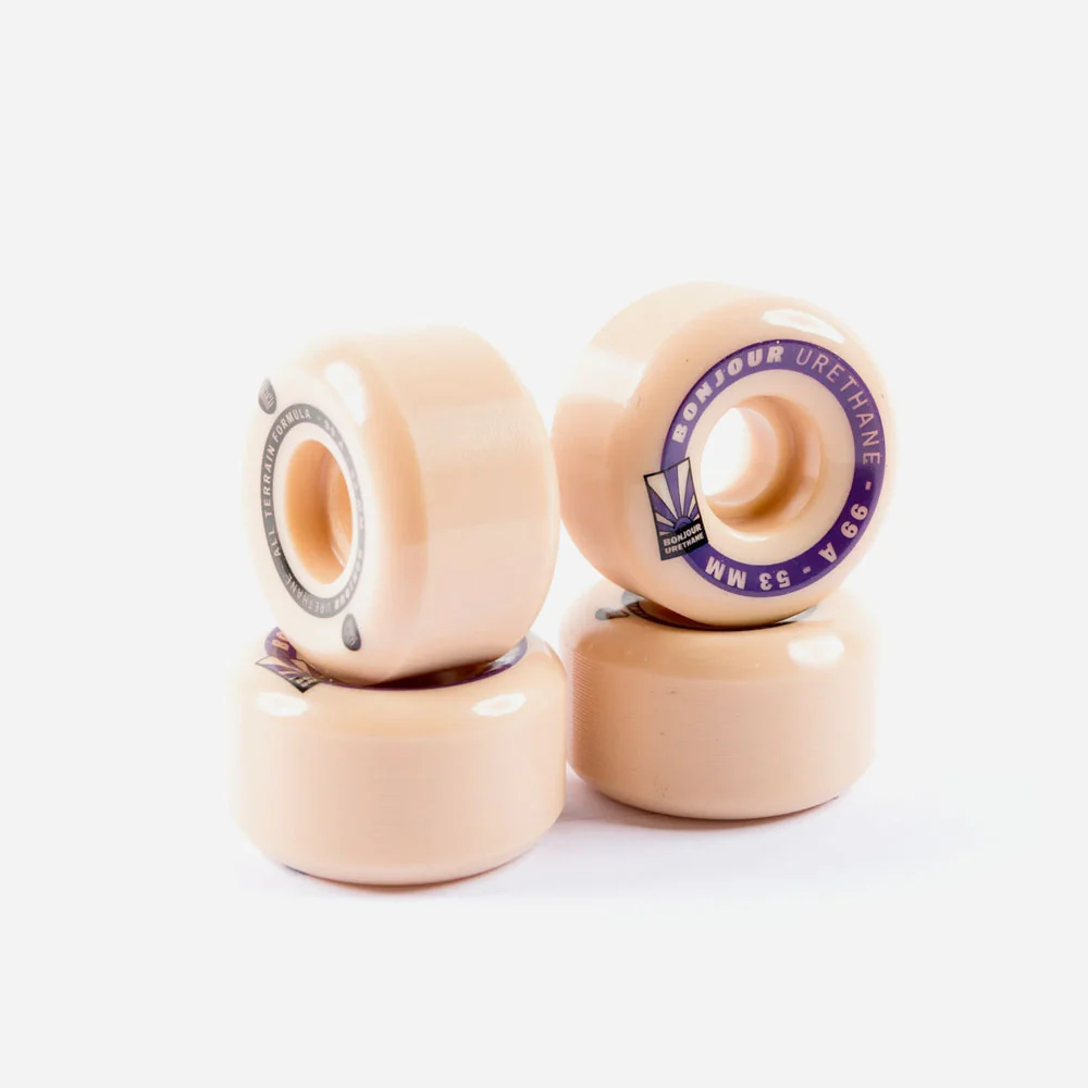 Jeu de 4 roues de skateboard Bonjour Urethane. Shape conique.