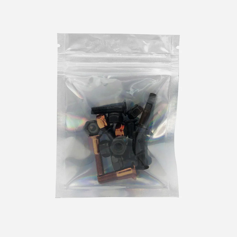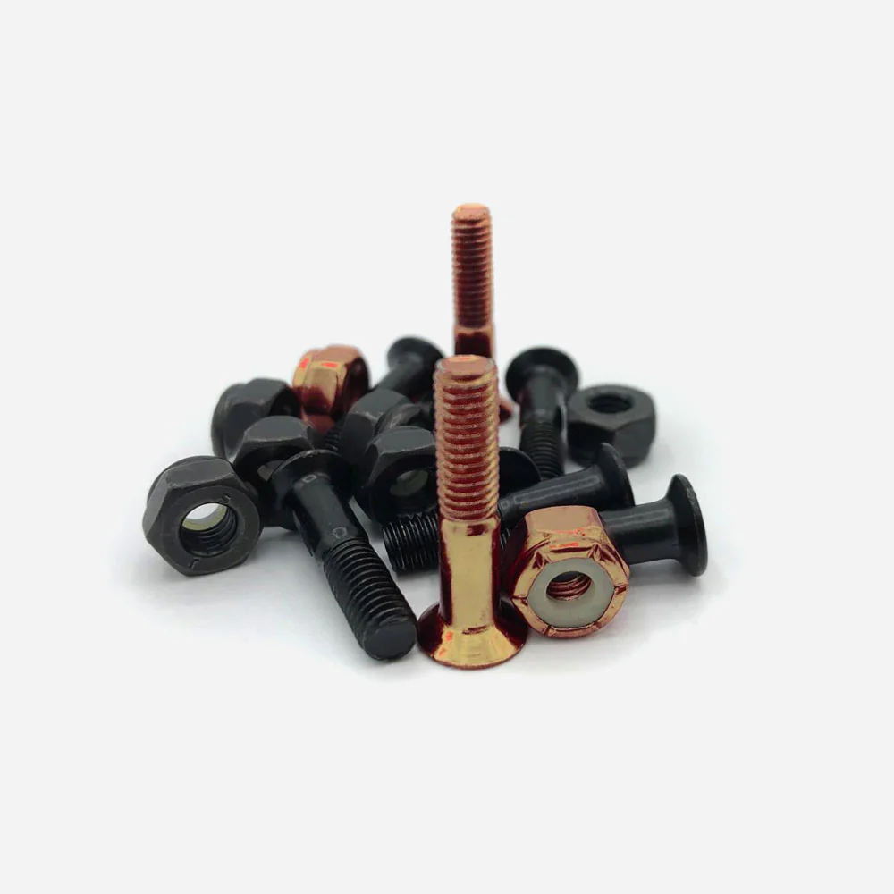Jeu de visserie Broski pour skateboard, pro-modèle d’Aurelien Giraud, composé de 8 vis noirs et 2 vis bronze à tête Allen de longueur 1 pouce (2,54 cm) et boulons assortis