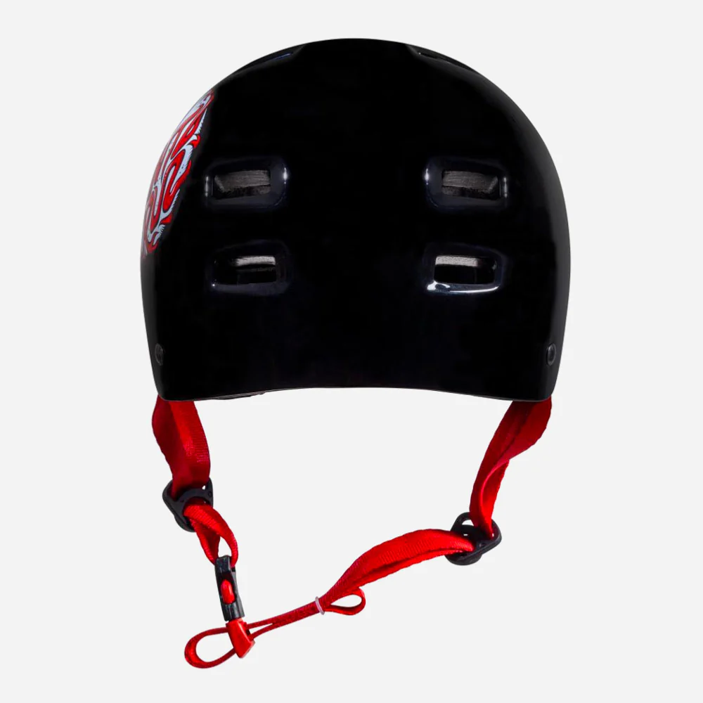 Casque te protection junior réalisé en collaboration avec la marque de skateboard Santa Cruz et avec le logo iconique Eyeball. Ce casque répond aux normes Européennes de protection CE EN 1078.