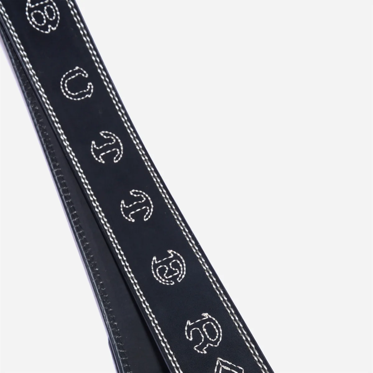 Cette ceinture en cuir synthétique arbore un motif en relief unique. Elle est décorée de coutures contrastantes tout le long et se ferme avec une boucle métallique au style western, pour un look audacieux et fun.