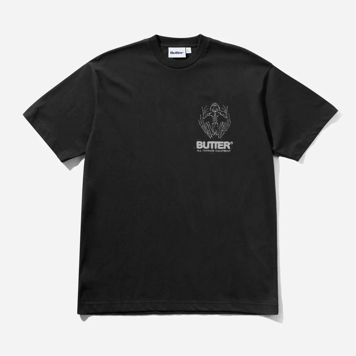 T-shirt Butter Goods coupe droite ample, fabrication en coton 220g. Visuel sérigraphié sur l’avant et dans le dos.