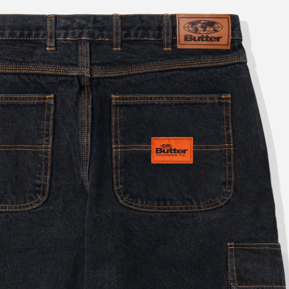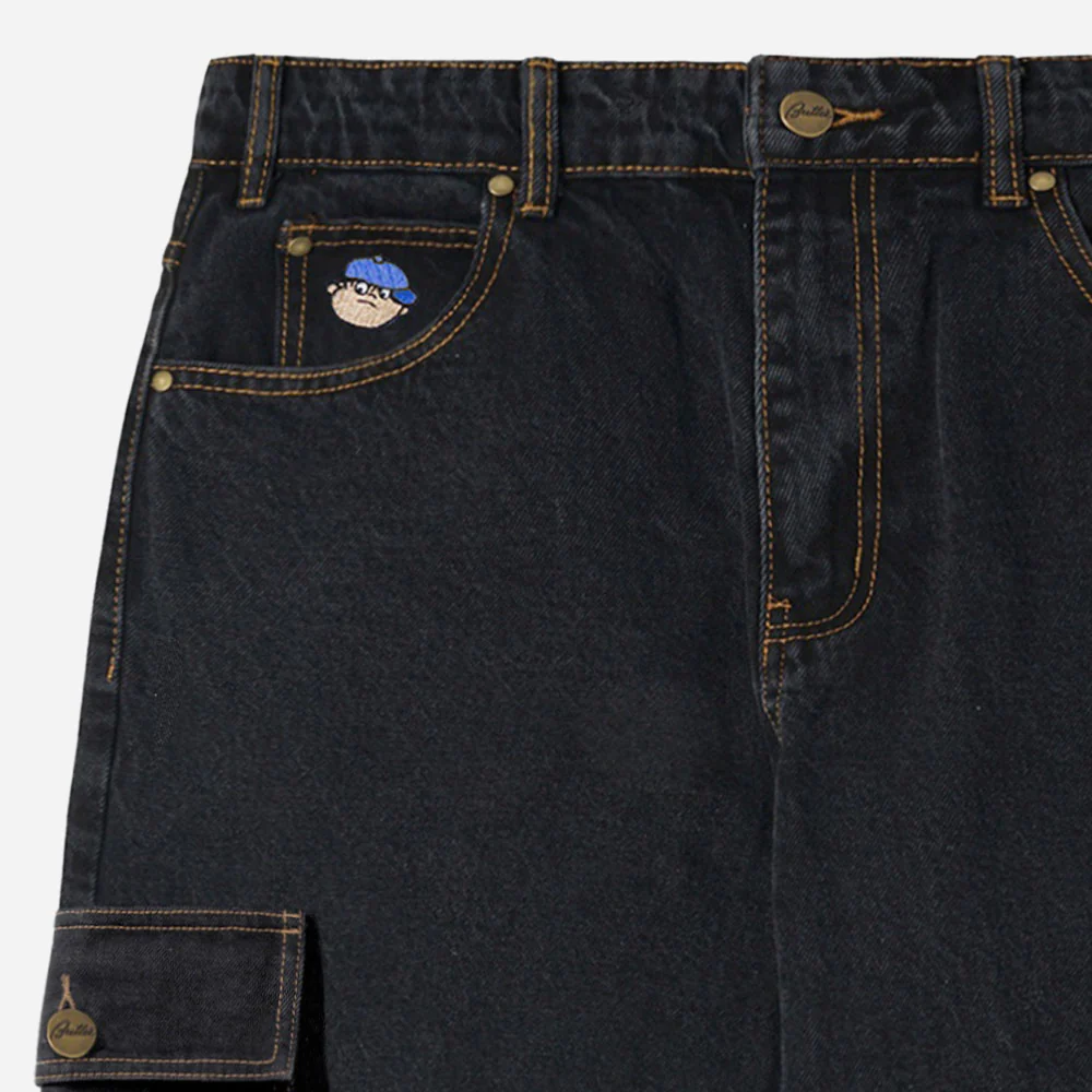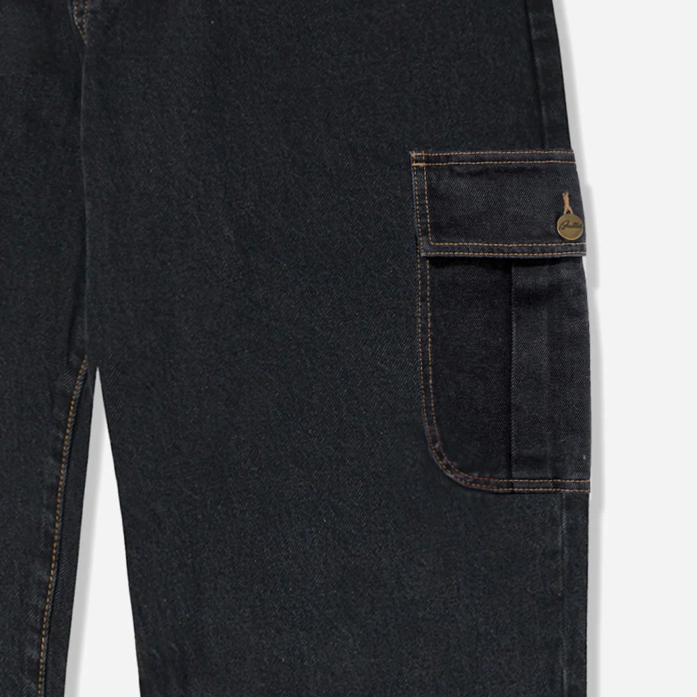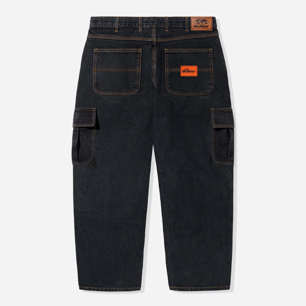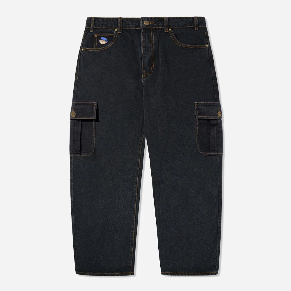BUTTER GOODS – SANTOSUOSSO CARGO DENIM JEANS – Washed BlackJean cargo Ultra-Baggy en coton noir délavé avec surpiques contrastés. Étiquette tissé sur la poche arrière. Broderie sur la poches avant. Cordon de serrage interne pour le réglage de la taille.Voir tour BUTTER