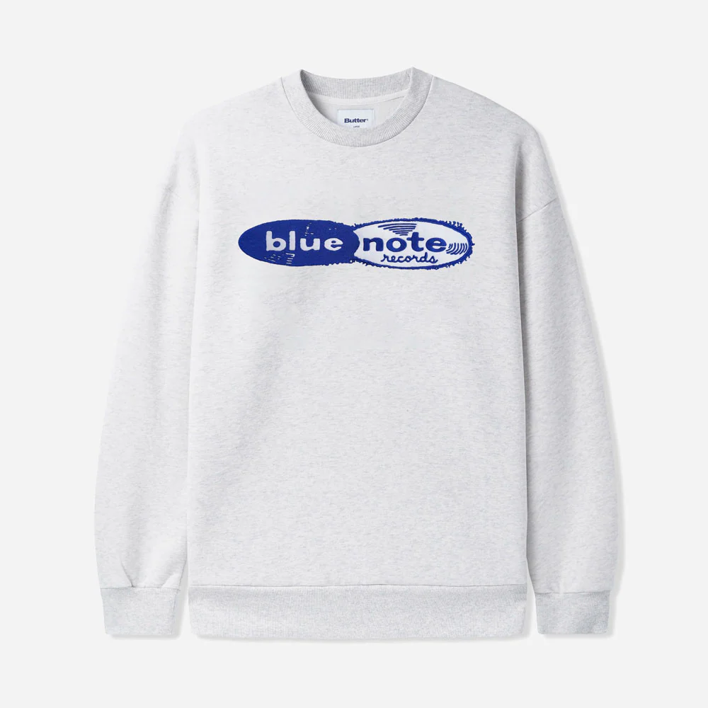 BUTTER GOODS x BLUE NOTE – RECORDS LOGO FELT APPLIQUE CREW – Ash