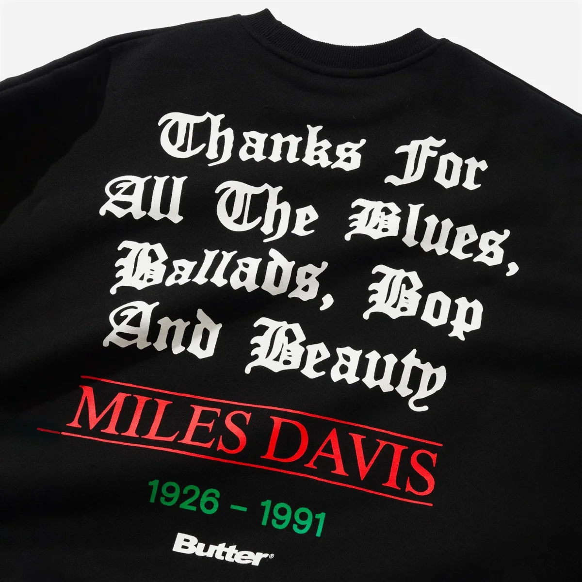 Butter Goods x Miles Davis – Thanks Crewneck – Black