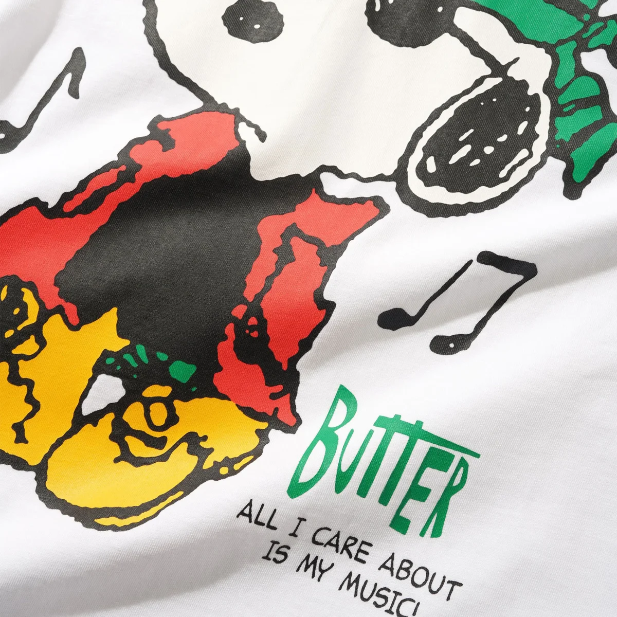 T-shirt Butter Goods réalisé en collaboration avec Snoopy (Peanuts), coupe droite ample, fabrication en coton 220g. Visuel sérigraphié sur l’avant.
