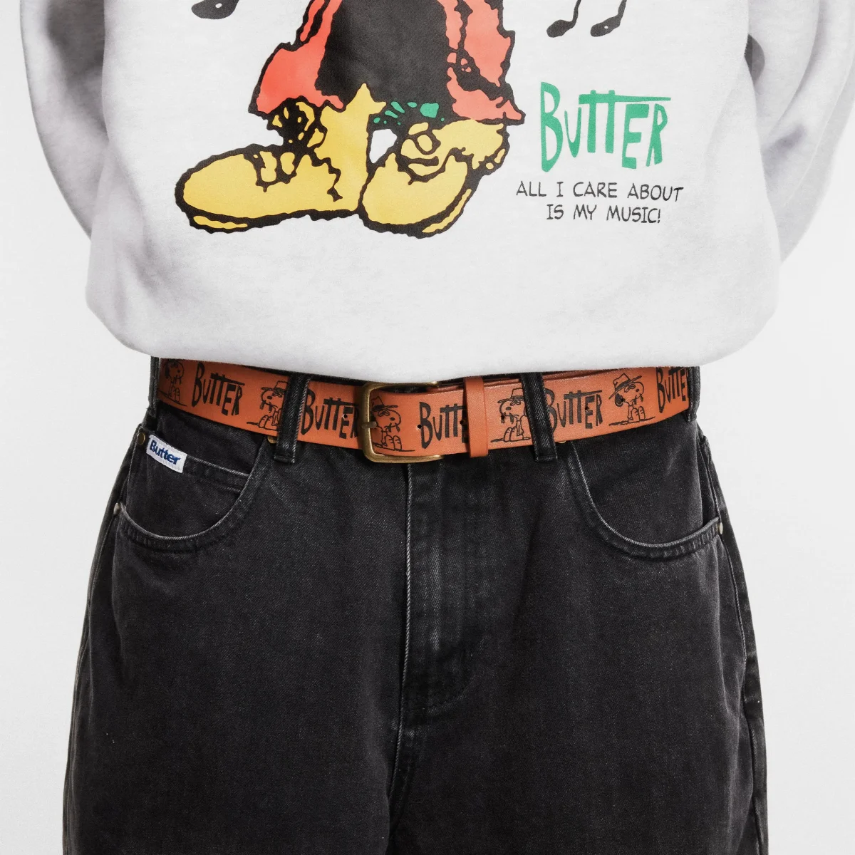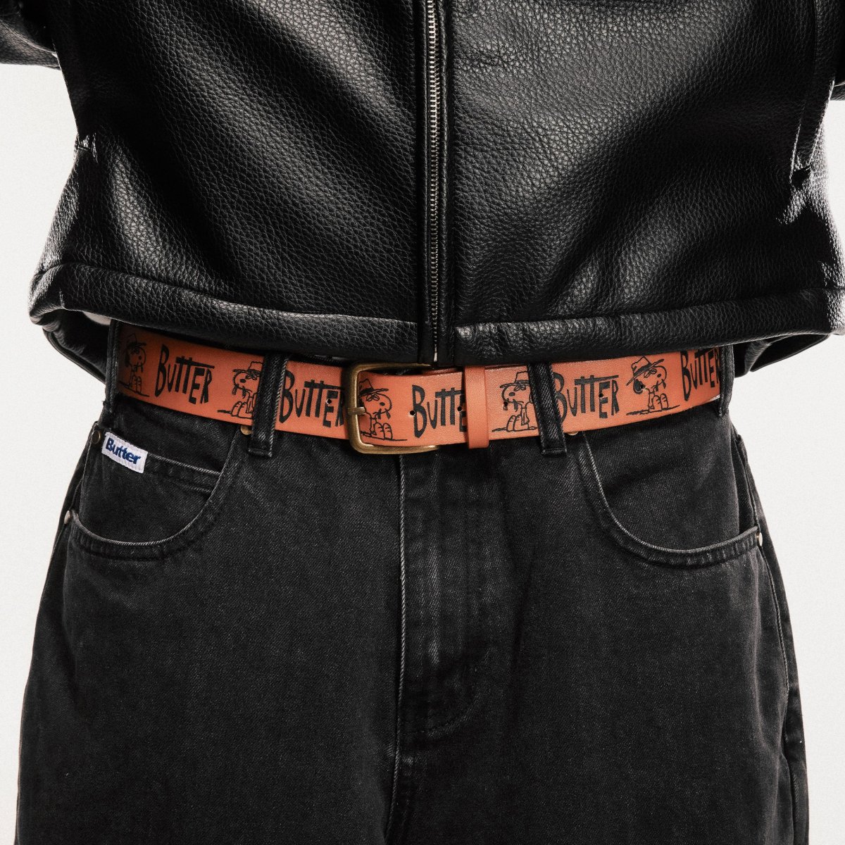 Cette ceinture en cuir synthétique arbore un motif en relief unique issue de la collaboration entre Snoopy et Butter. Taille unique.