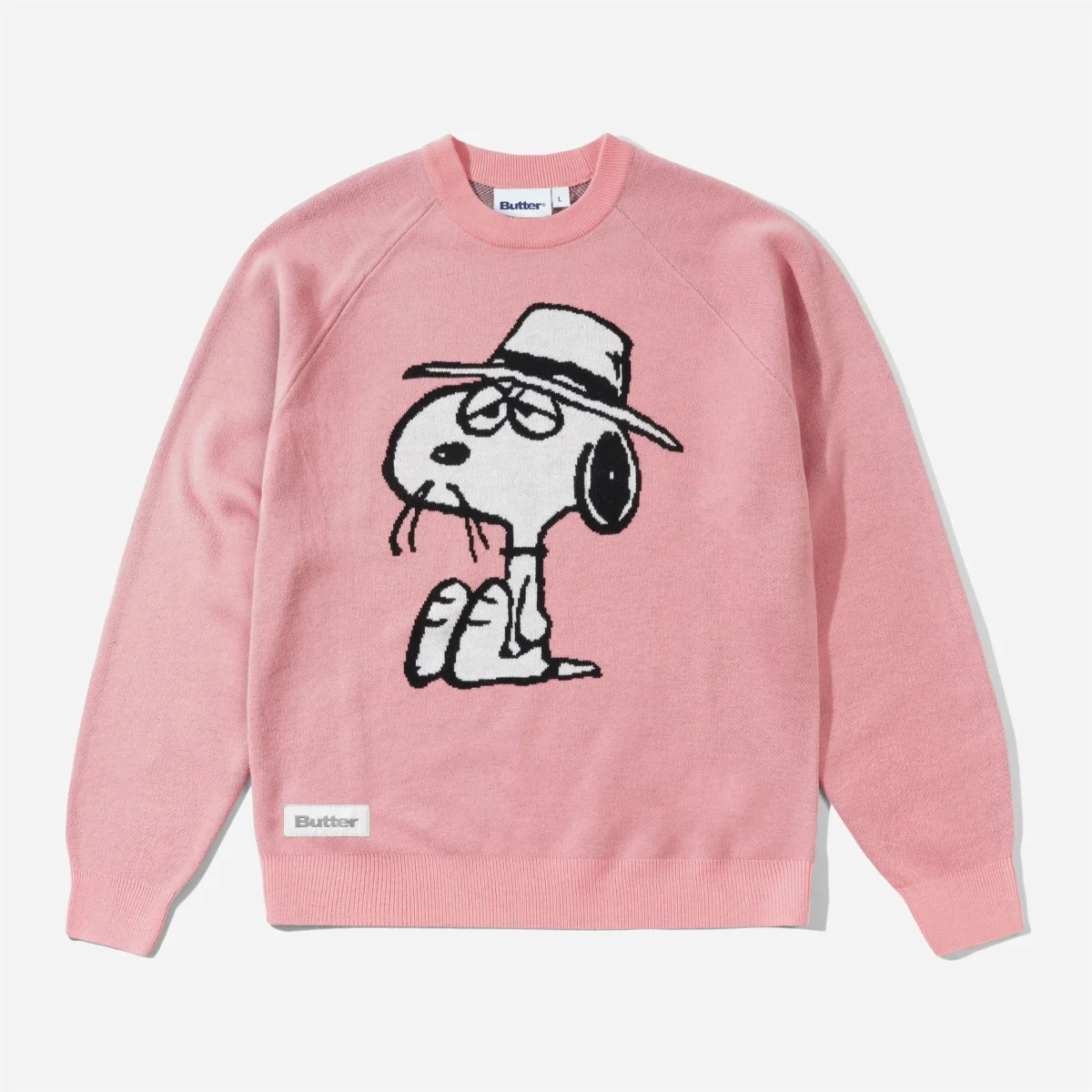 Butter Goods x Peanuts – Spike Knit Sweater – Light Pink