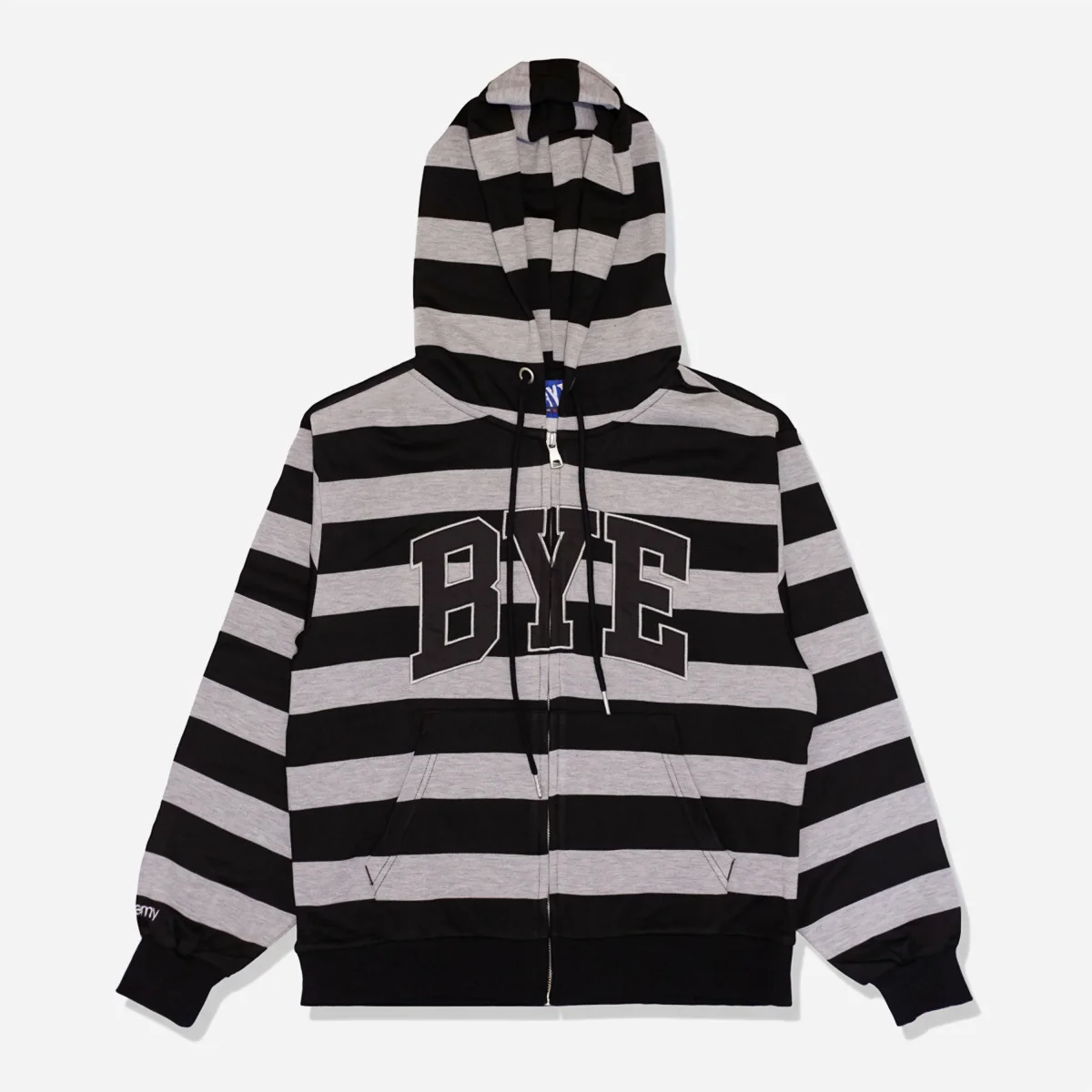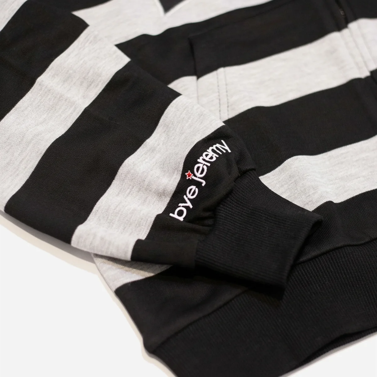 Bye Jeremy Bye Zip Hoodie – Grey & Black Stripes