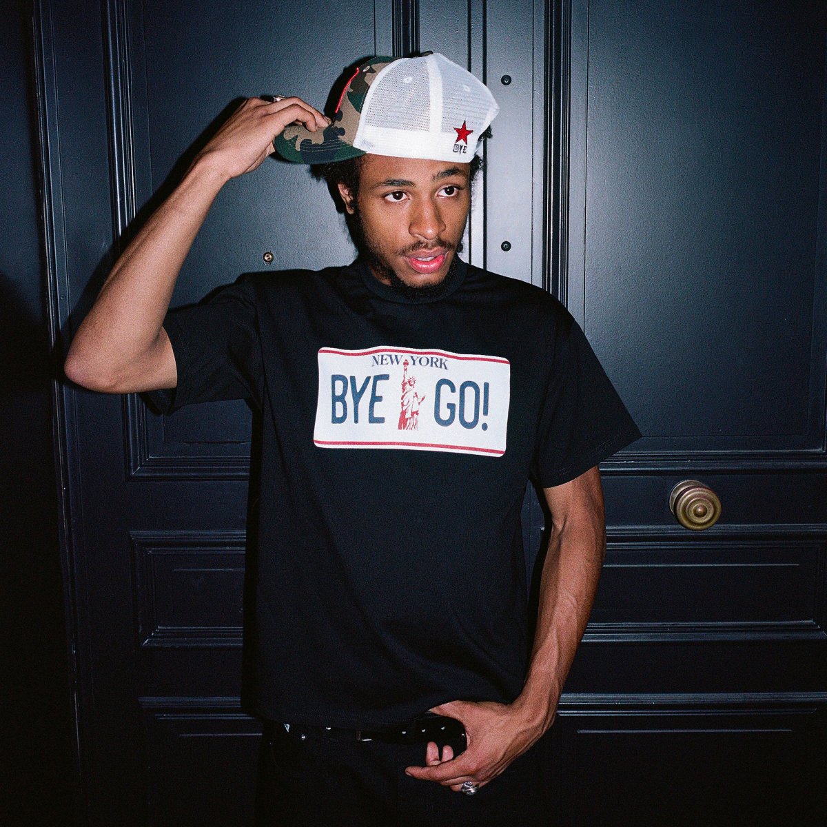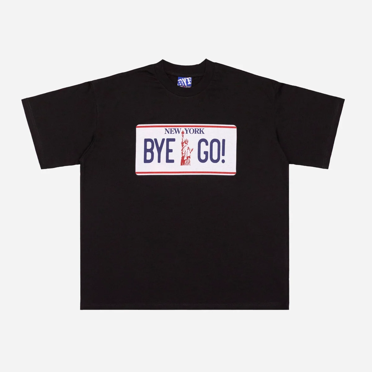 T-shirt Bye Jeremy avec visuel sérigraphié à la main, coupe droite classique, fabriqué aux États-Unis en pur coton.