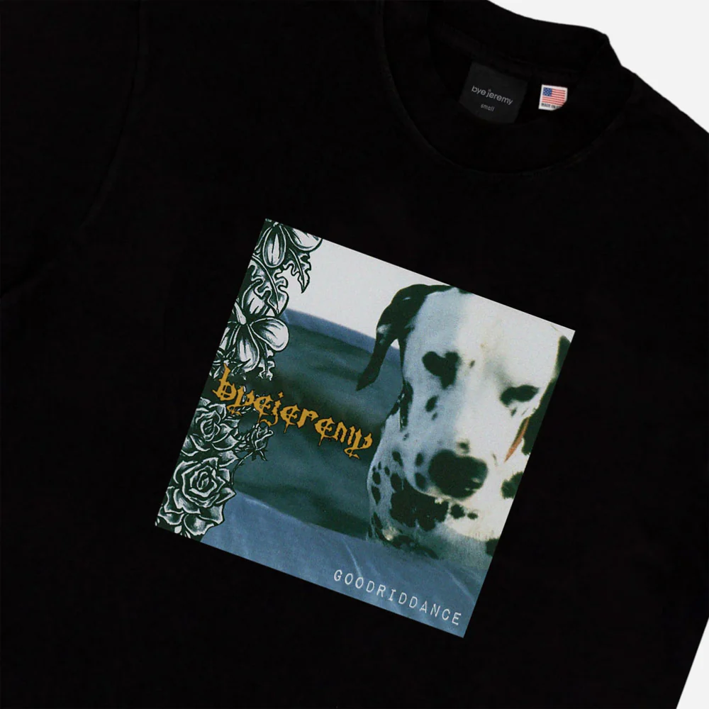 T-shirt Bye Jeremy avec visuel sérigraphié à la main, coupe droite classique, fabriqué aux États-Unis en pur coton.