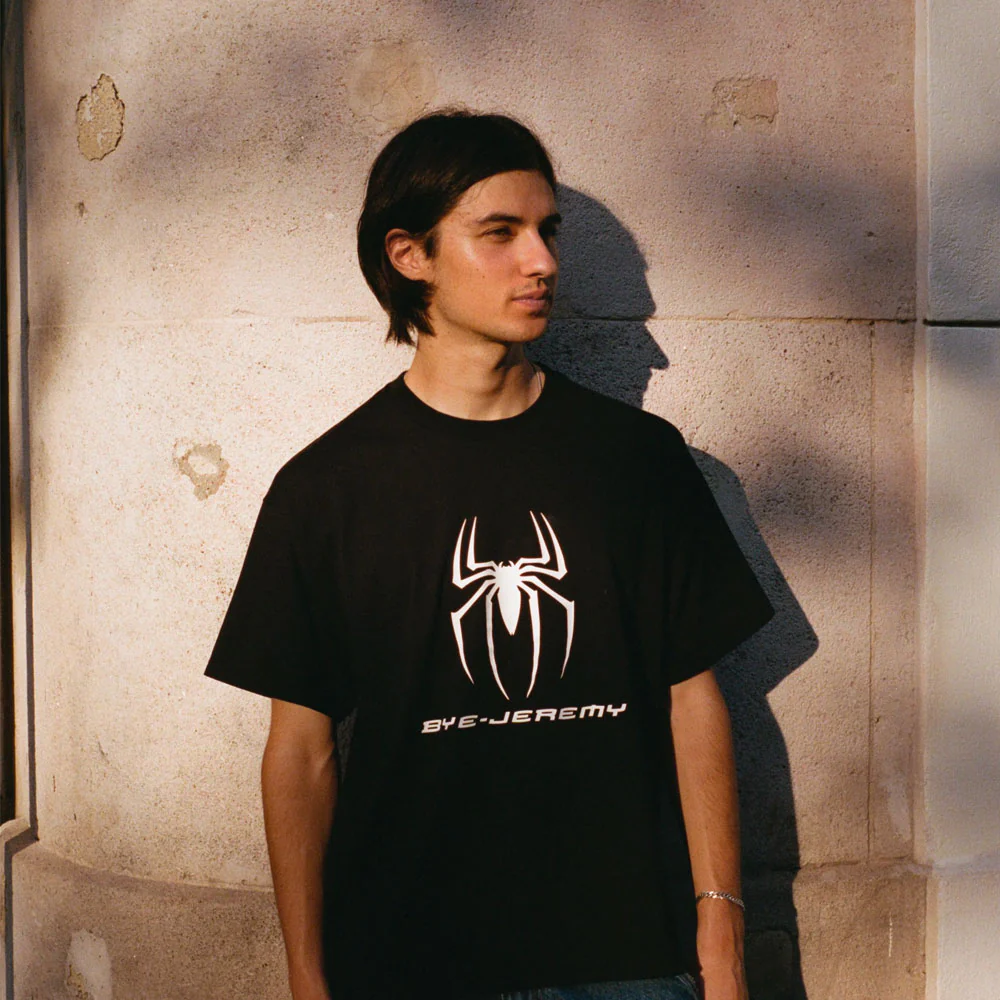 T-shirt Bye Jeremy avec visuel sérigraphié à la main, coupe droite classique, fabriqué aux États-Unis en pur coton.