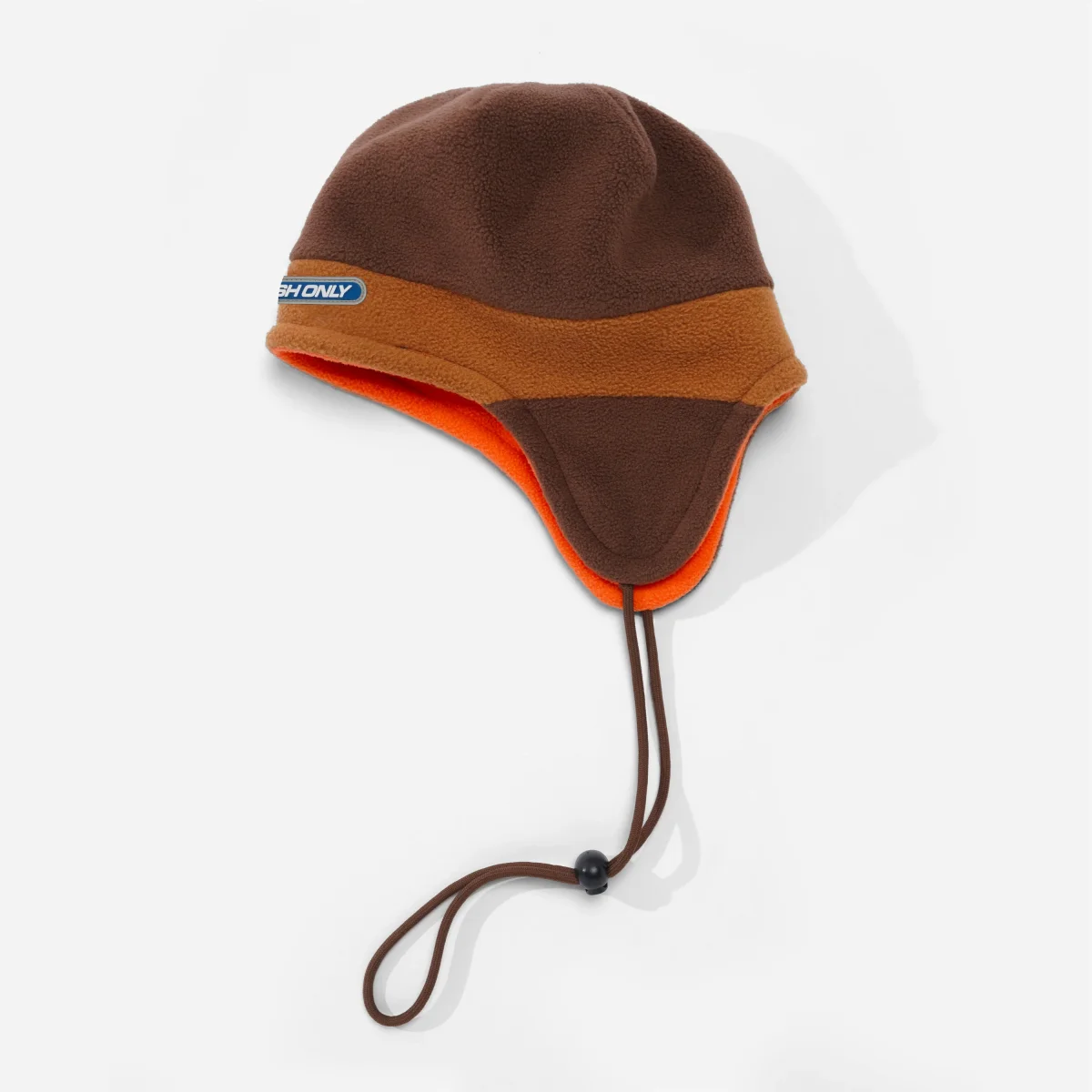 Bonnet Cash Only en polaire avec oreilles, doublure contrastée, Logo Cash Only en caoutchouc sur le devant, cordons de serrage avec boucle de serrage.
