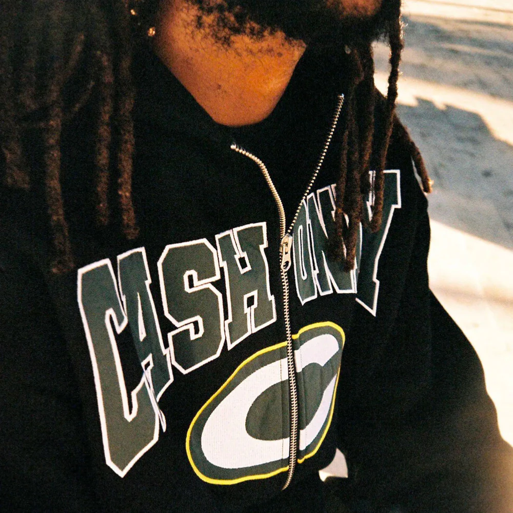 Sweatshirt à capuche zippée Cash Only coupe droite, avec visuel en nylon brodé devant.