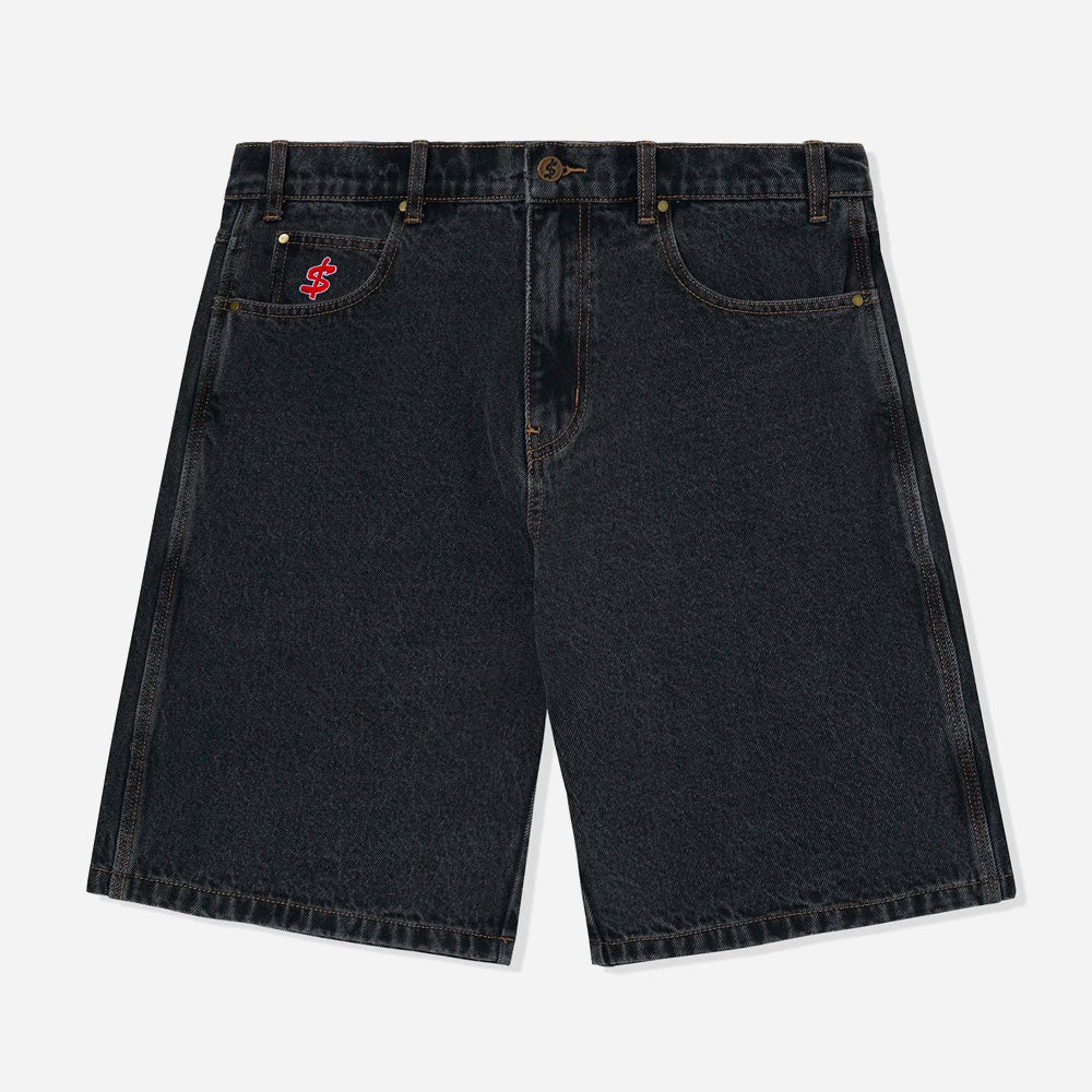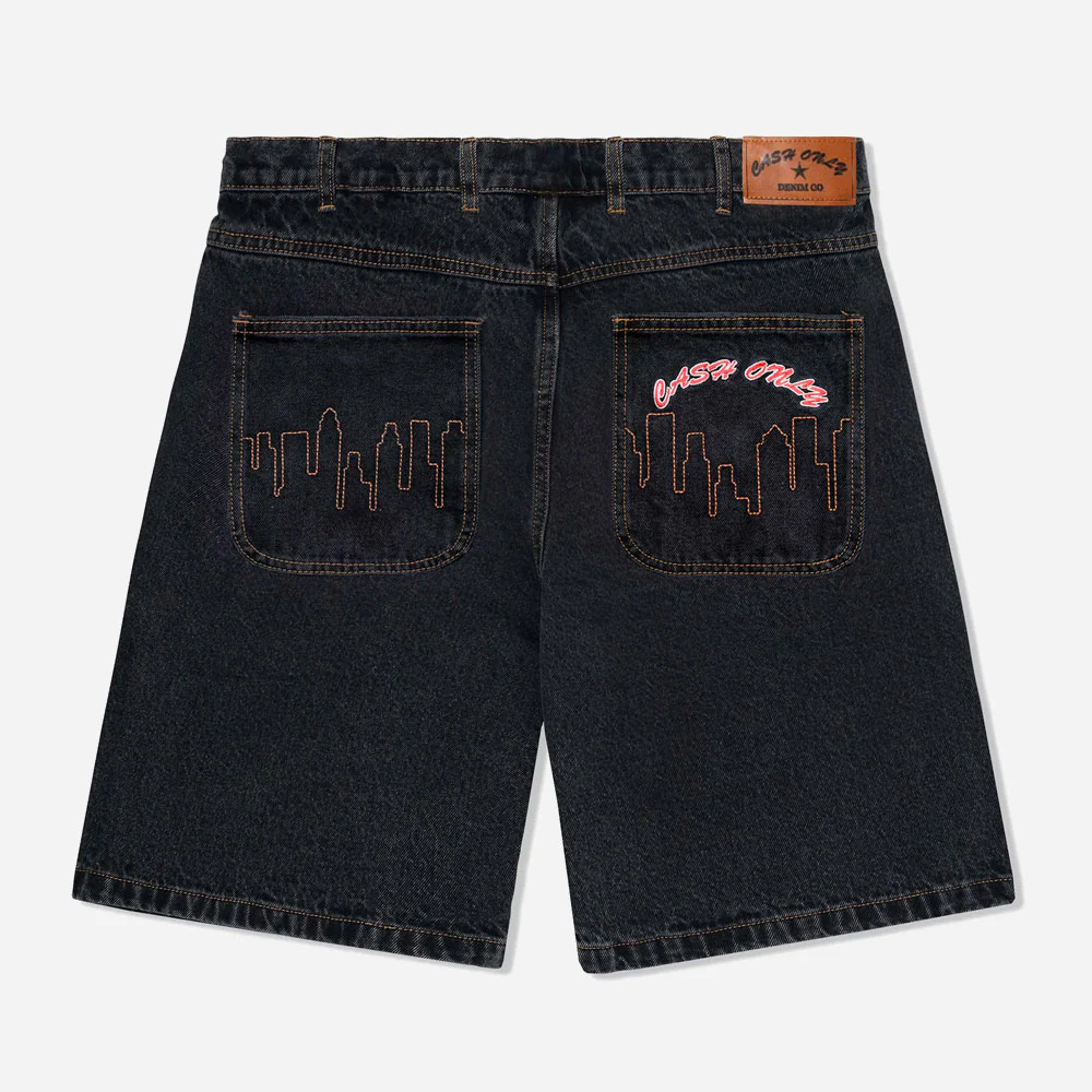 CASH ONLY – LOGO DENIM SHORTS – Washed Black
