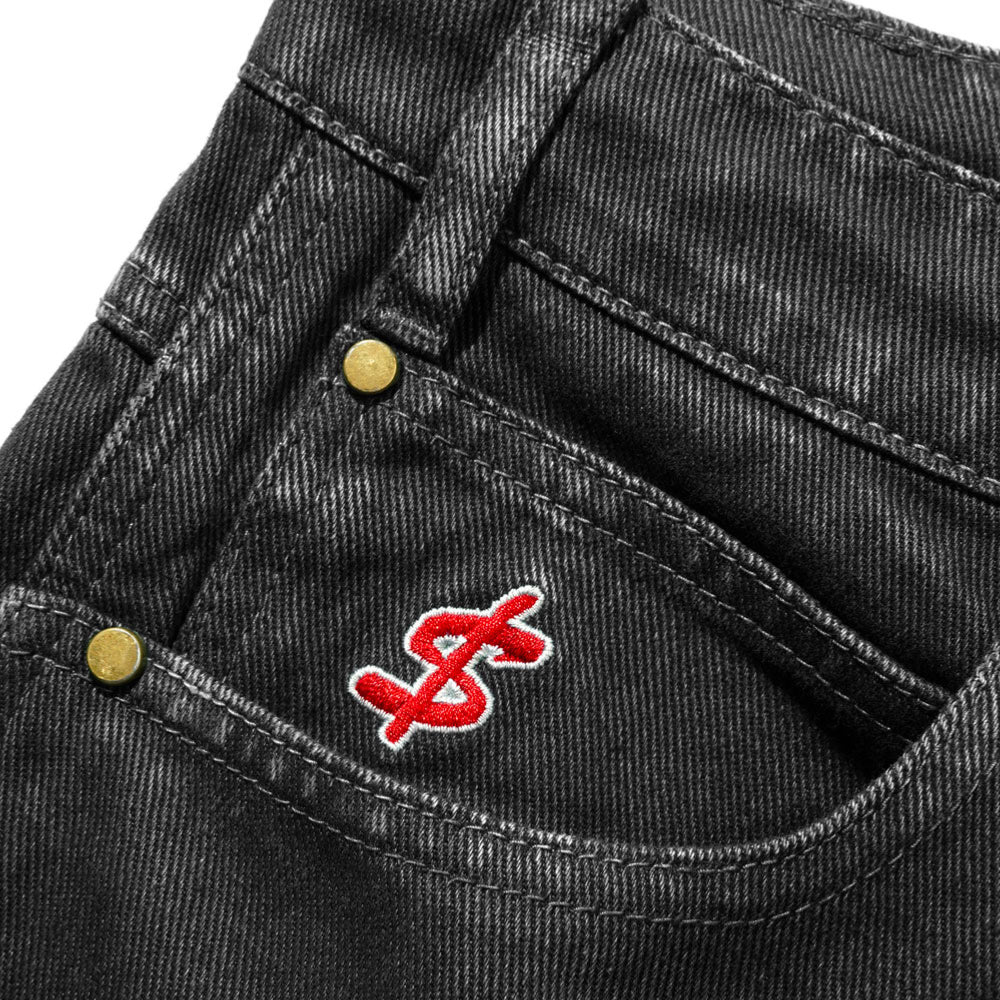 CASH ONLY – RECORDS DENIM SHORTS – Black