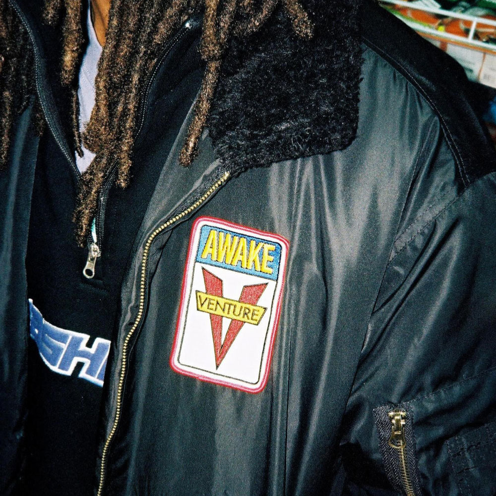 Veste réalisée en collaboration entre Cash Only et Venture. Coupe bomber, isolé en nylon avec fermeture à glissière métallique. Broderie et écusson à bords froncés sur le devant. Col en fausse fourrure et doublure en satin. Grande broderie haute densité au dos avec lettres en point de chaînette. Poches sur le devant, le bras et […]