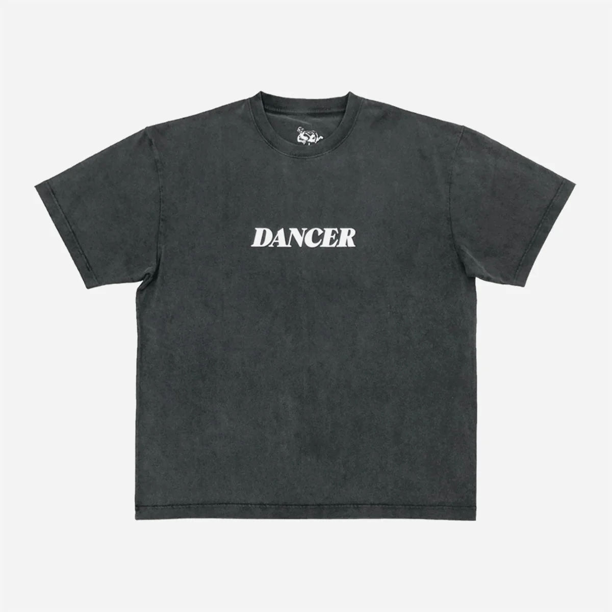 T-shirt manches courtes Dancer, fabriqué au Portugal en jersey de coton 260 g/m² pré-rétréci, coupe ample droite, logo sérigraphié et teinture au pigment noir.