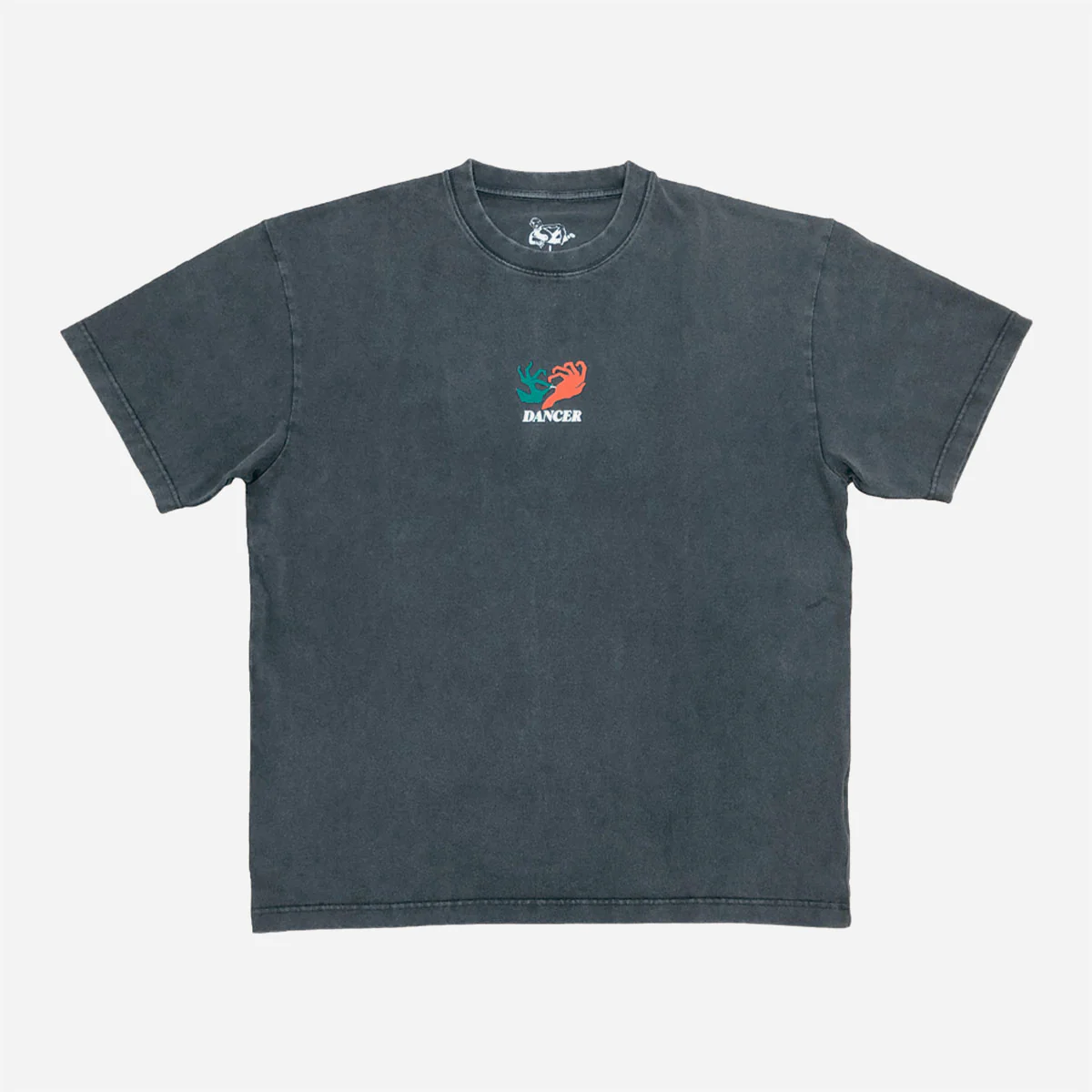 T-shirt manches courtes Dancer, fabriqué au Portugal en jersey de coton 260 g/m² pré-rétréci, coupe ample droite, logo sérigraphié et teinture au pigment noir.