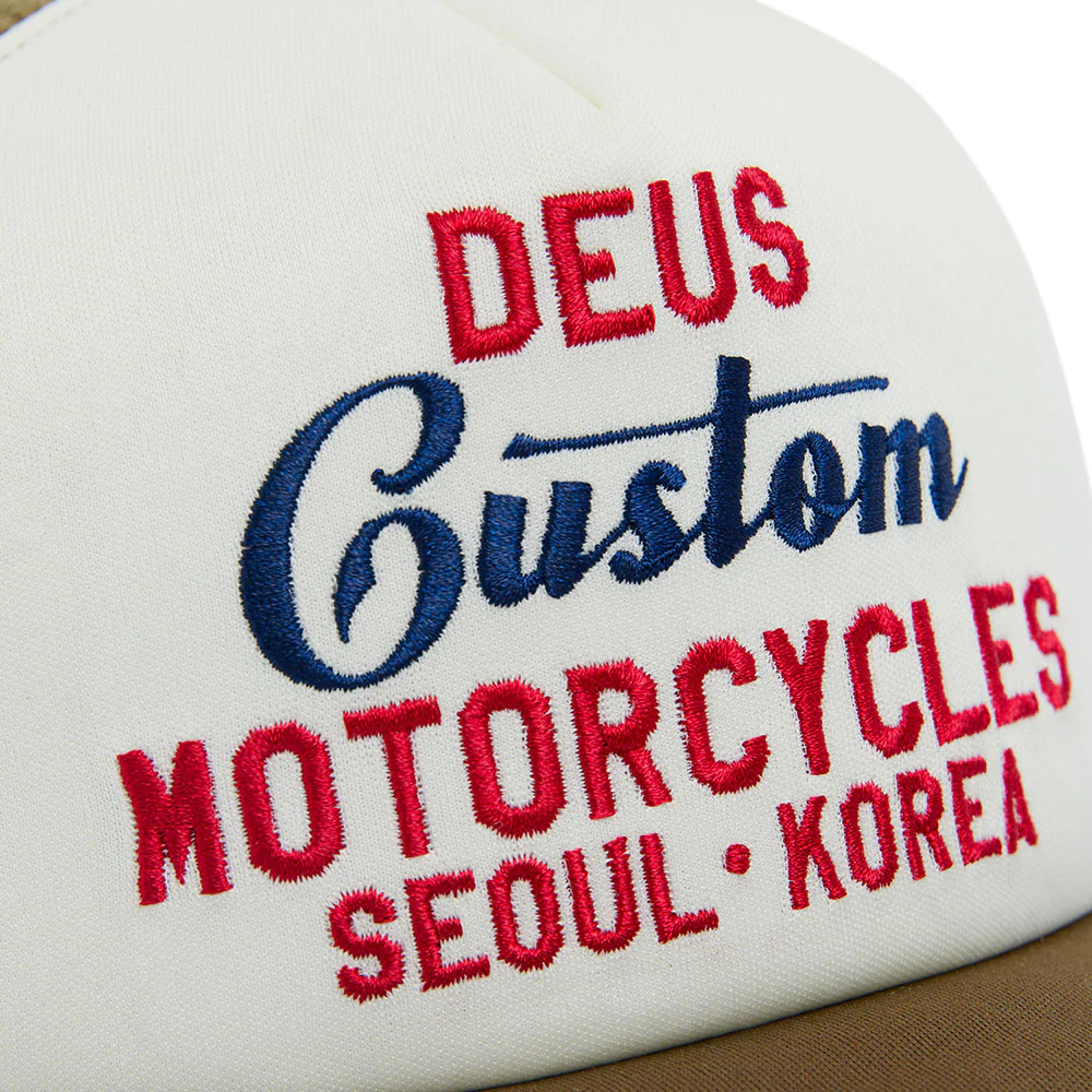 Casquette Deus de type classique trucker avec un large logo Deus brodé à l’avant et petit Logo à l’arrière. Taille réglable grâce a son système d’ajustement au niveau de la nuque.