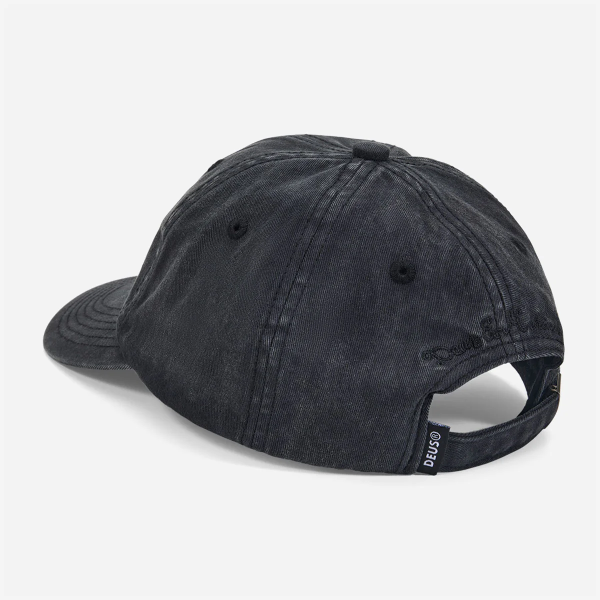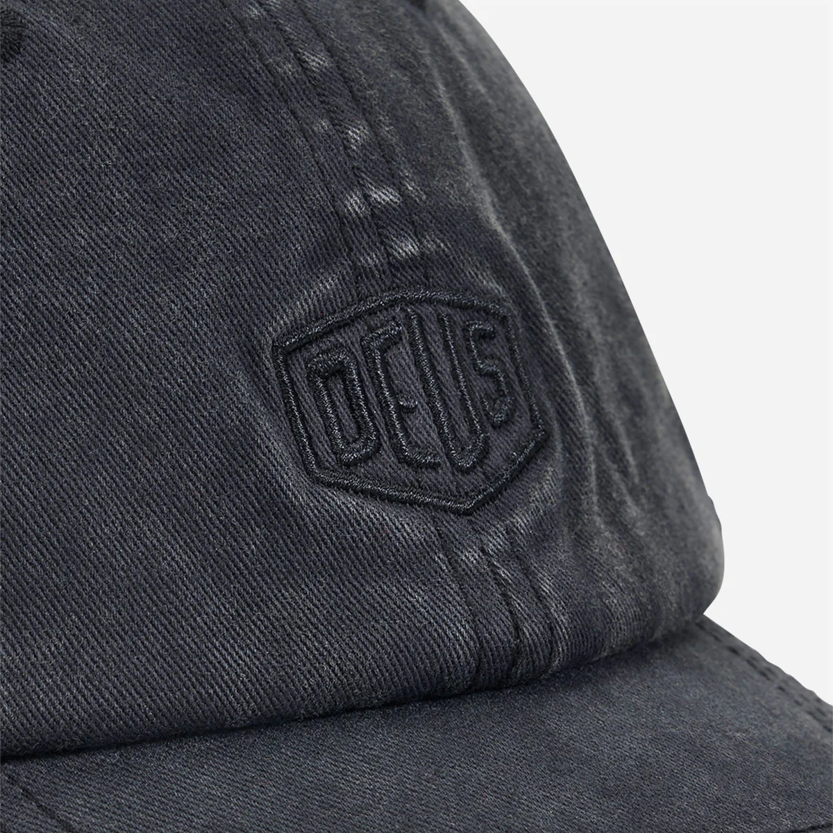Casquette classique Deus à 6 panneaux avec logo brodé ton sur ton, fabrication en twill de coton, teinte en pièce et lavée à l’enzyme pour un effet délavé intense.
