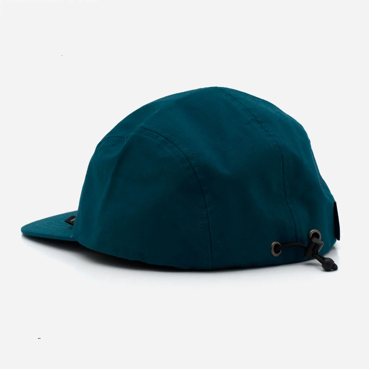 Casquette à 4 panneaux avec étiquette tissée à l’avant, broderie à l’arrière, cordon élastique et réglage à bascule en plastique dans un mélange de coton et de nylon