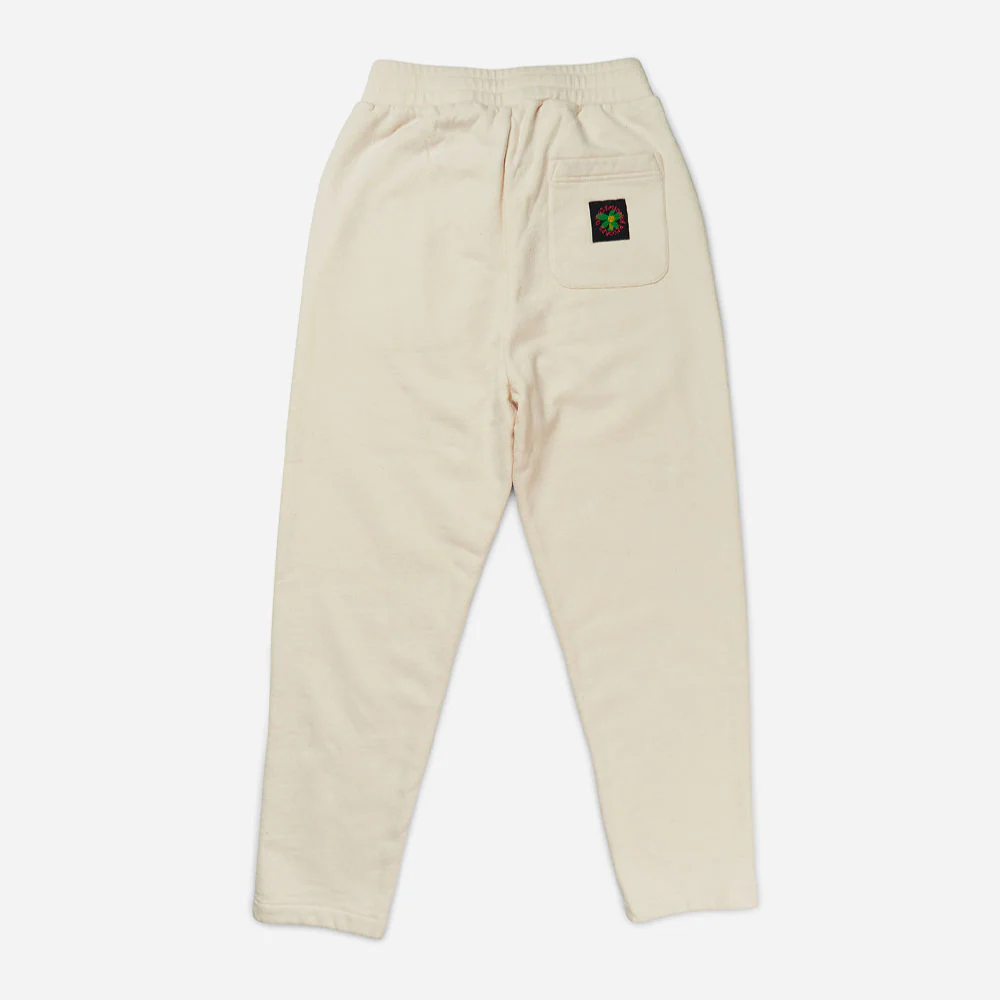 Pantalon de survêtement fabriqué en molleton à la coupe décontractée avec écusson en forme de cœur brodé sur la hanche inférieure. Taille et ourlets élastiqués, cordon de serrage à l’intérieur de la ceinture,une poche plaquée au dos et 2 poches fendues à l’avant
