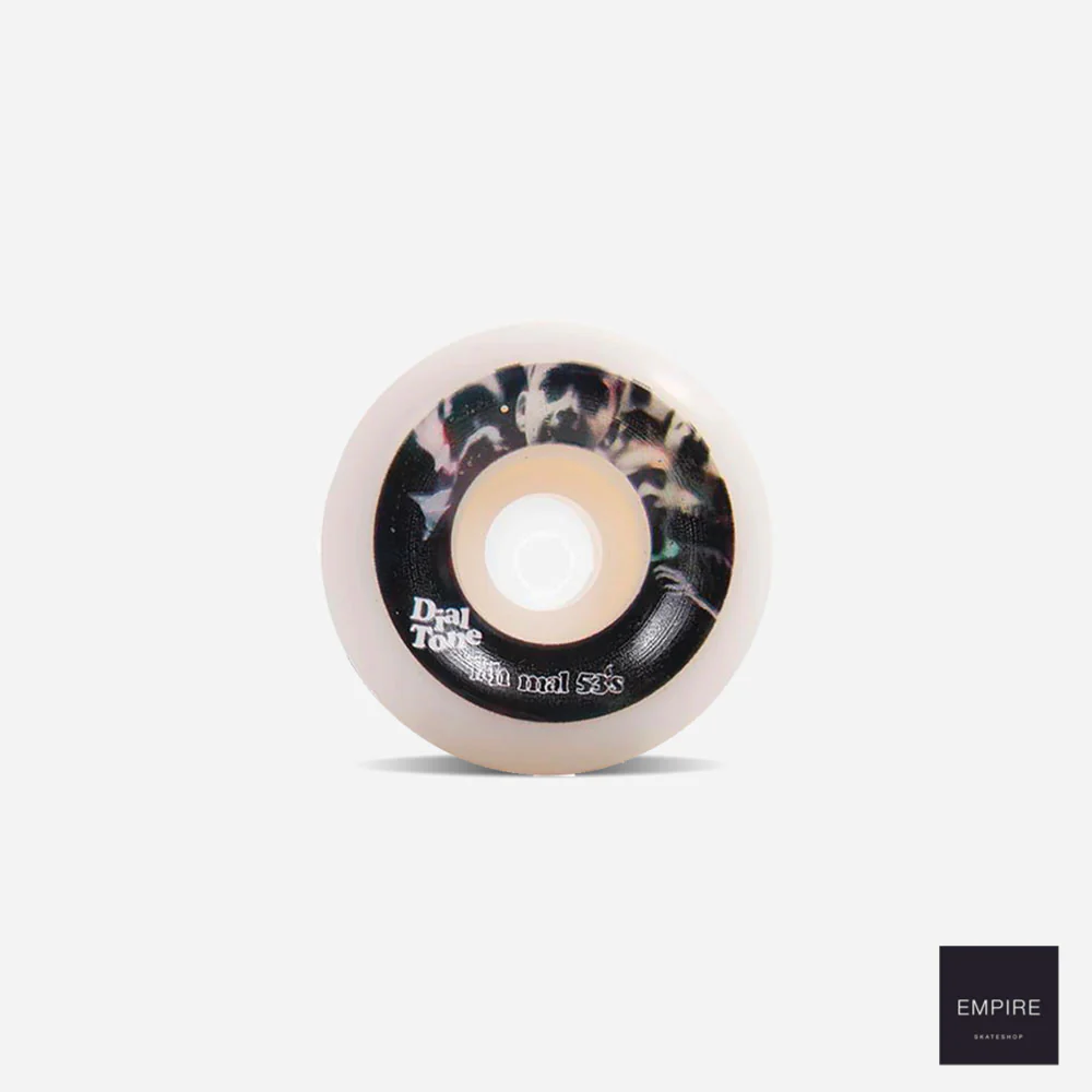 Set de 4 roues de skate en uréthane blanche. Face extérieure sérigraphiée. Diamètre 52 mm, duro 99A, shape classic.