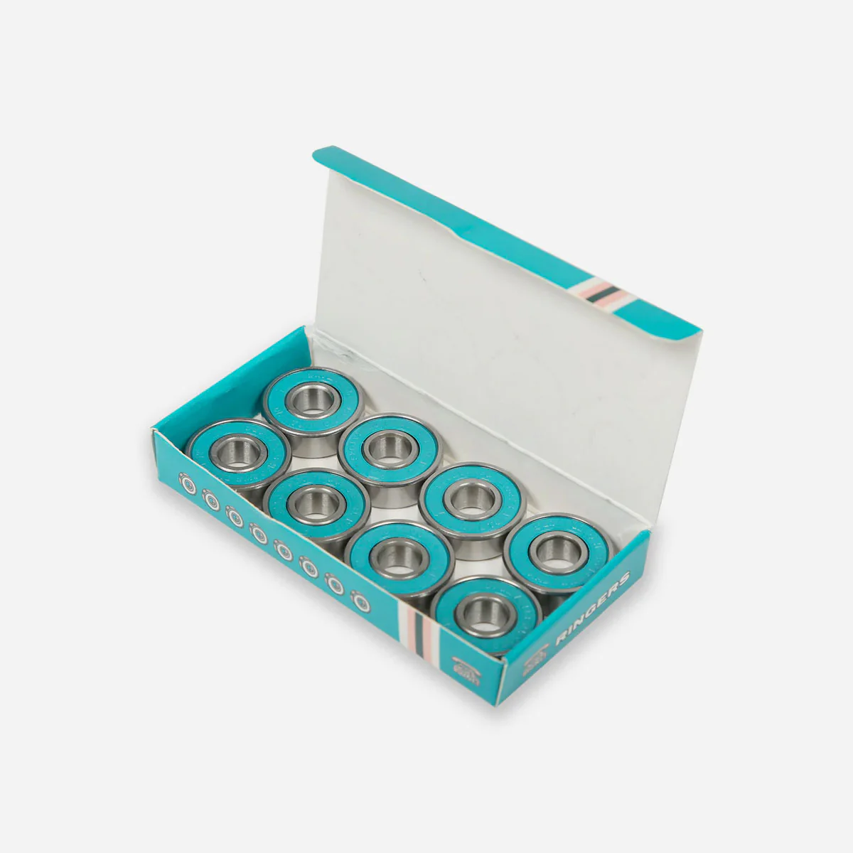 Boite contenant 8 roulements Grizzly pour skateboard, de précision Abec 7. Il s’agit du roulement le plus qualitatif de chez Shake Junt, il est sans contact avec des boucliers en caoutchouc amovibles pour un nettoyage facile et moins de friction.