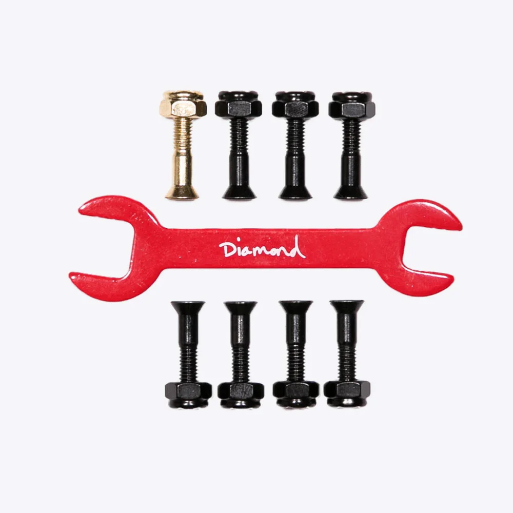 Visserie du pro-rideur Boo Johnson. Composé de huit vis 7/8″ avec écrous (sept noires et une doré), une clef allen et une clef à boulon.
