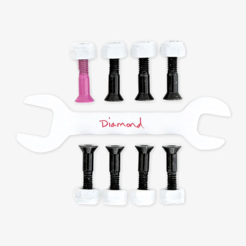 Visserie de la pro-rideuse Leticia Bufoni. Composé de huit vis 7/8″ avec écrous (sept noires et une rose), une clef allen et une clef à boulon.