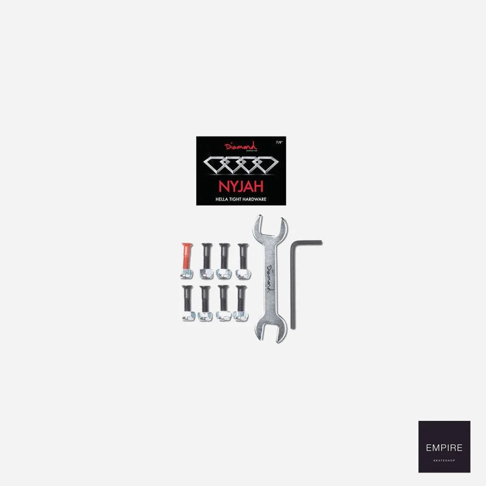 Visserie du pro-rideur Nyjah Huston. Composé de huit vis 7/8″ avec écrous (sept noires et une acier), une clef allen et une clef à boulon.