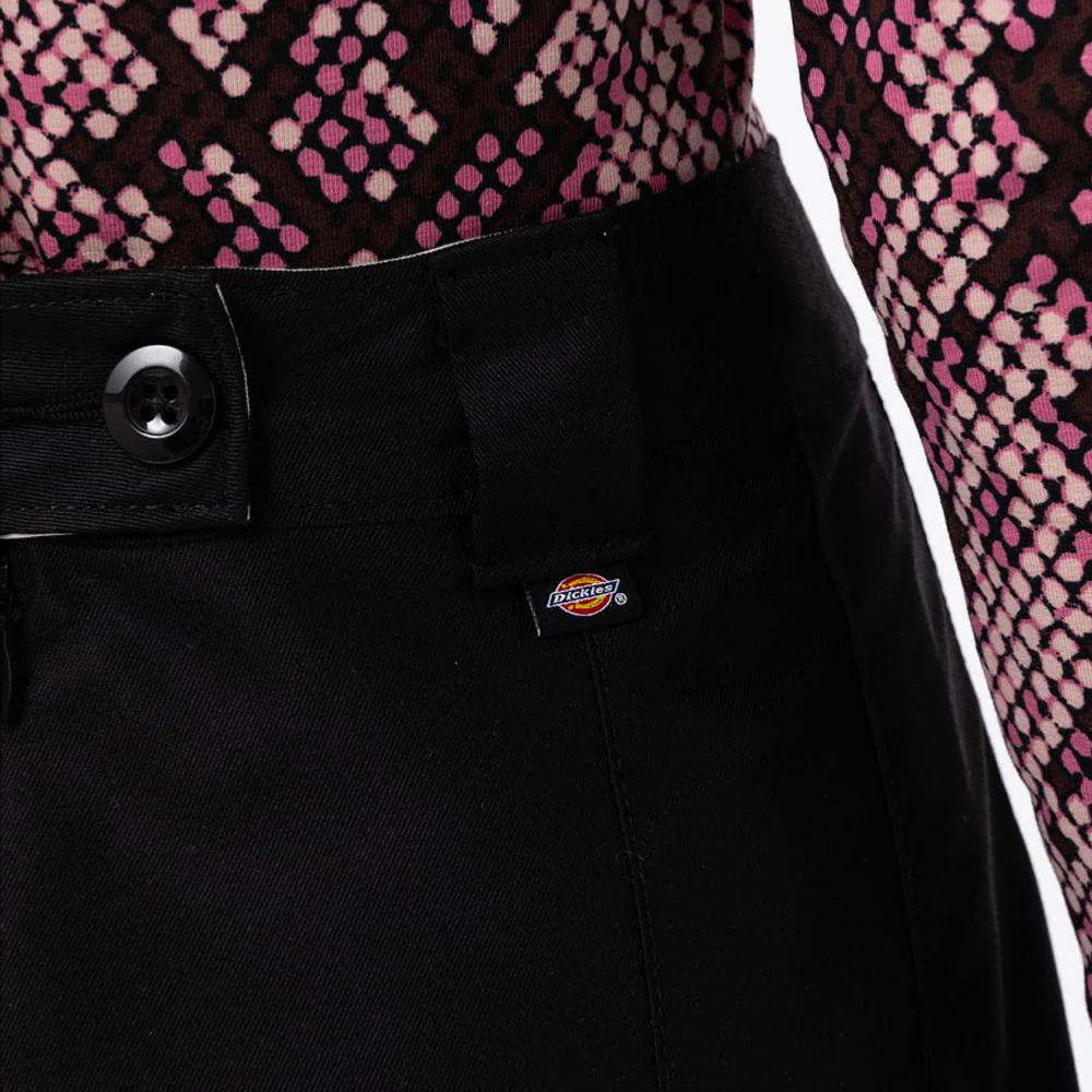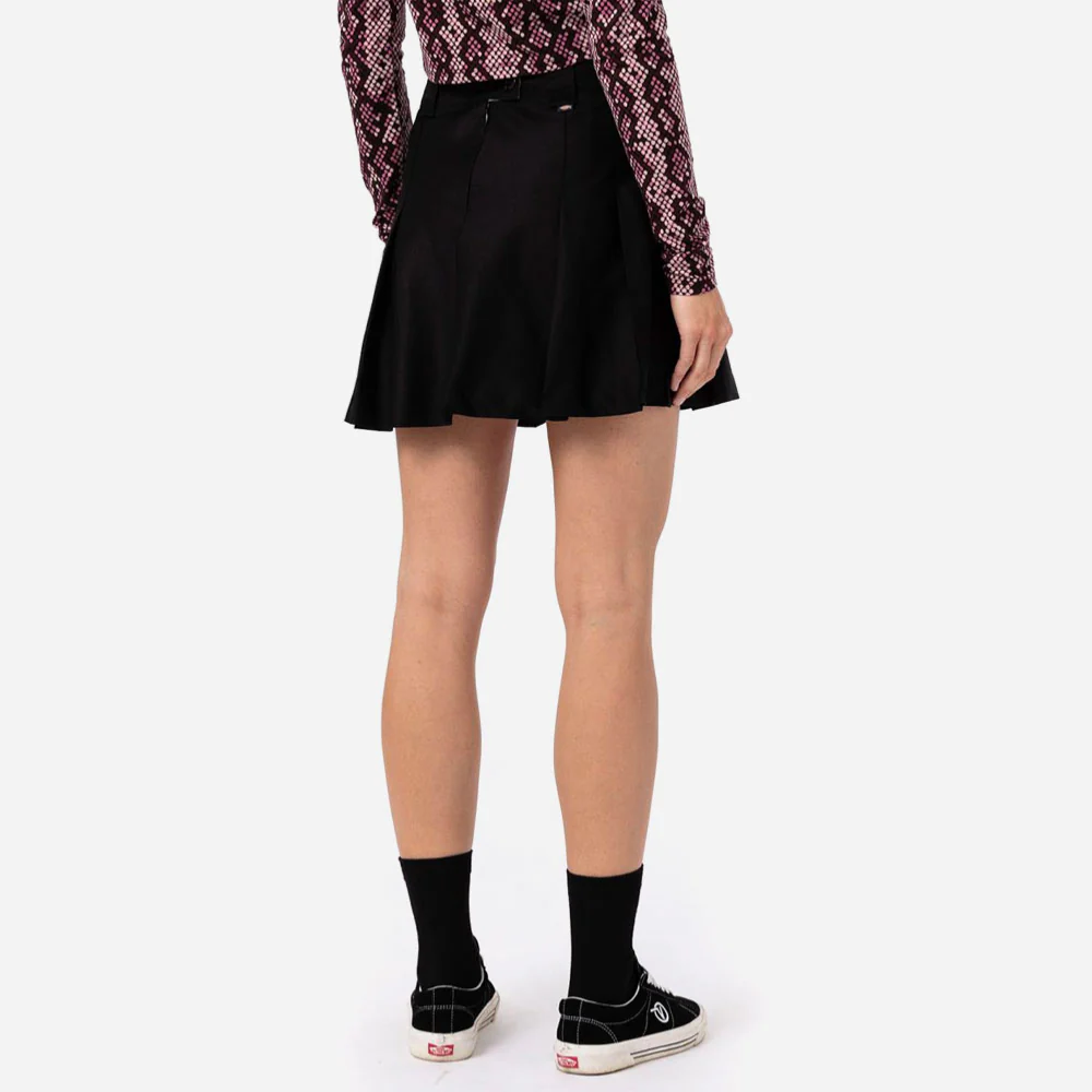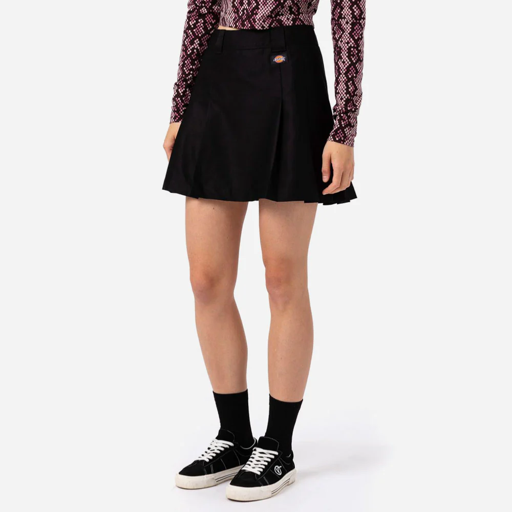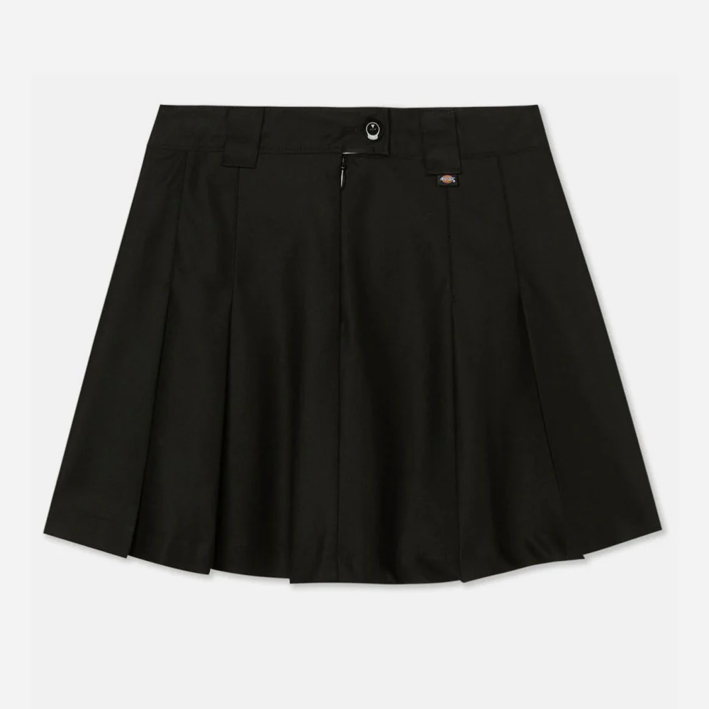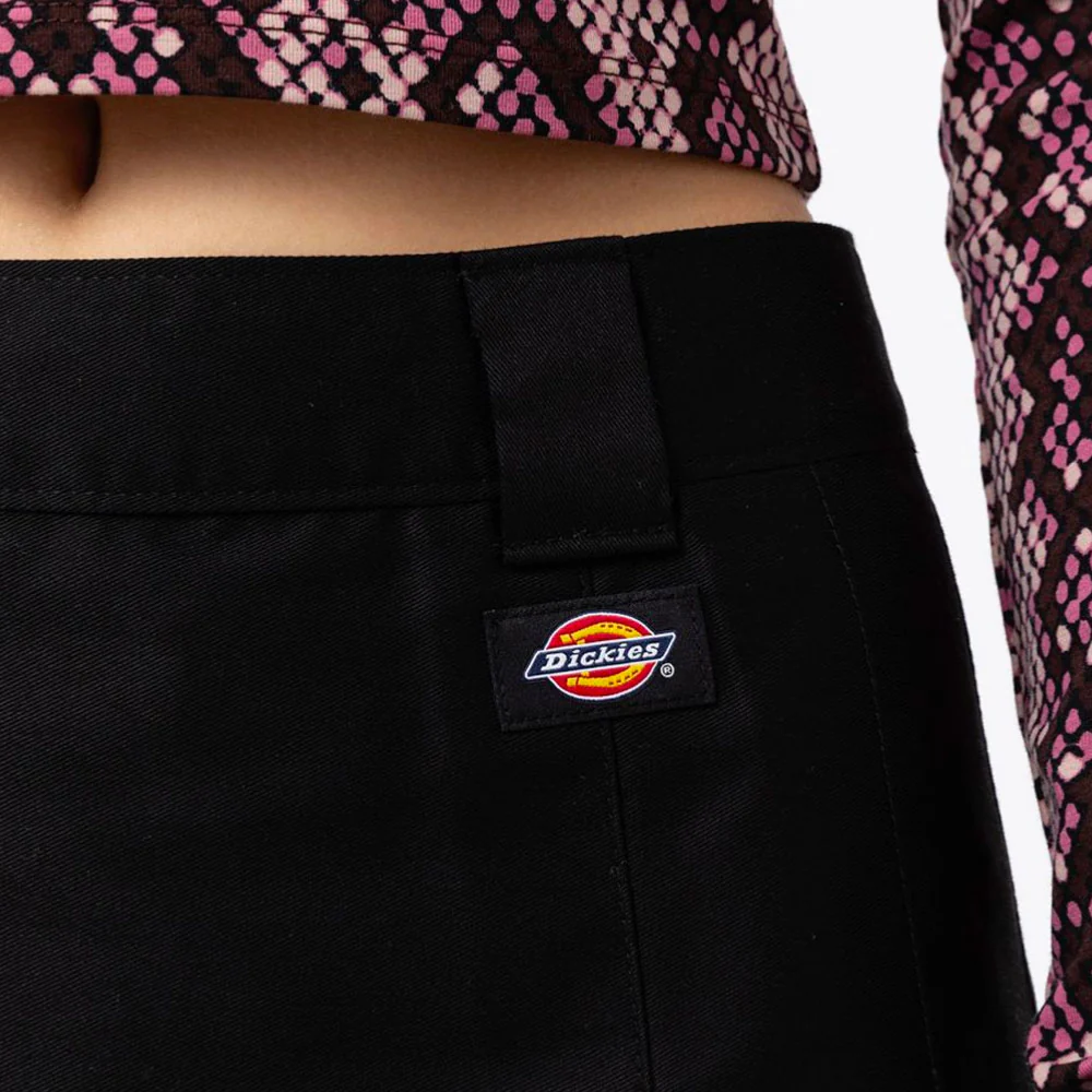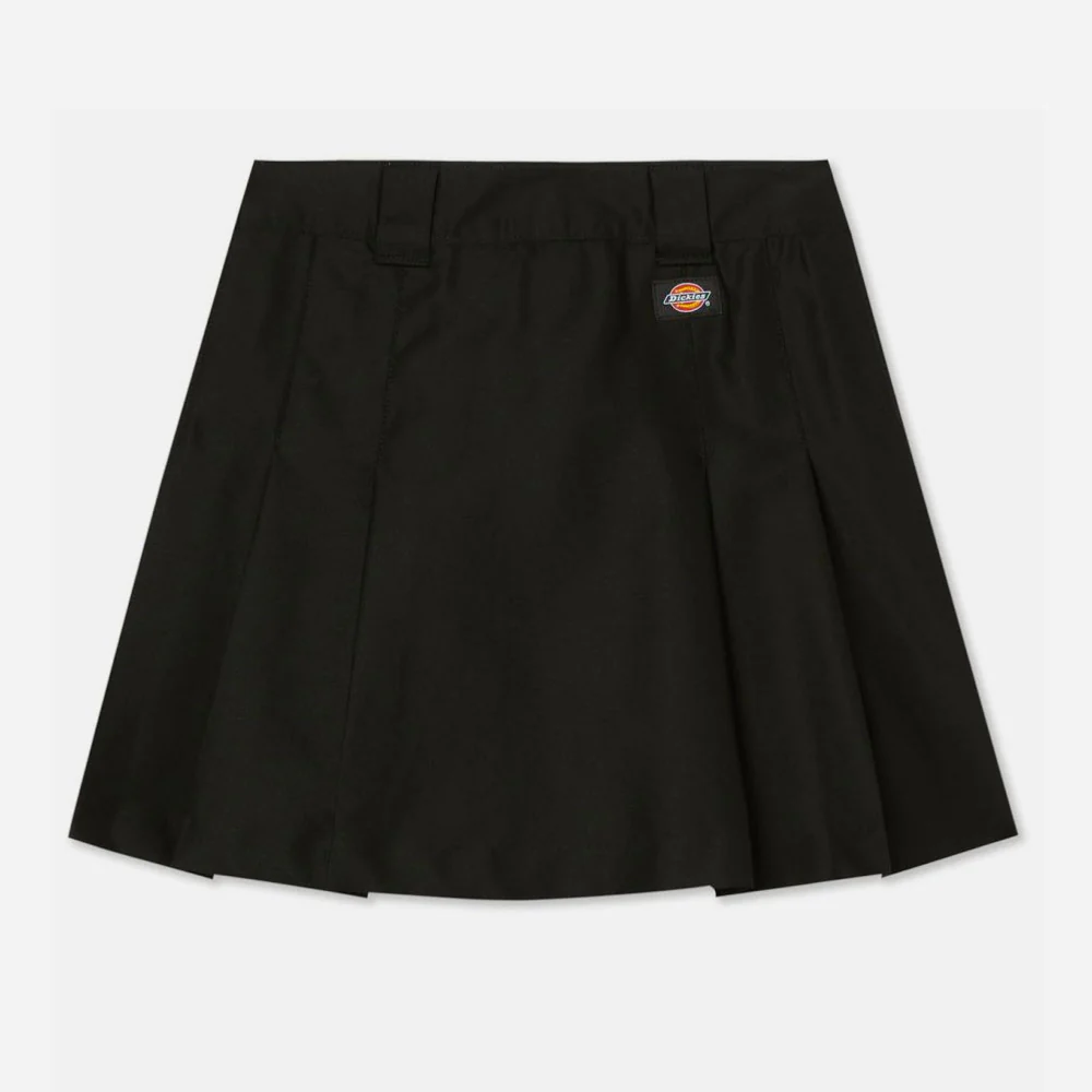 La jupe Elizaville offre une taille haute pour un look rétro fabriquée en polyester et coton durable. Logo Dickies en-dessous de la taille.