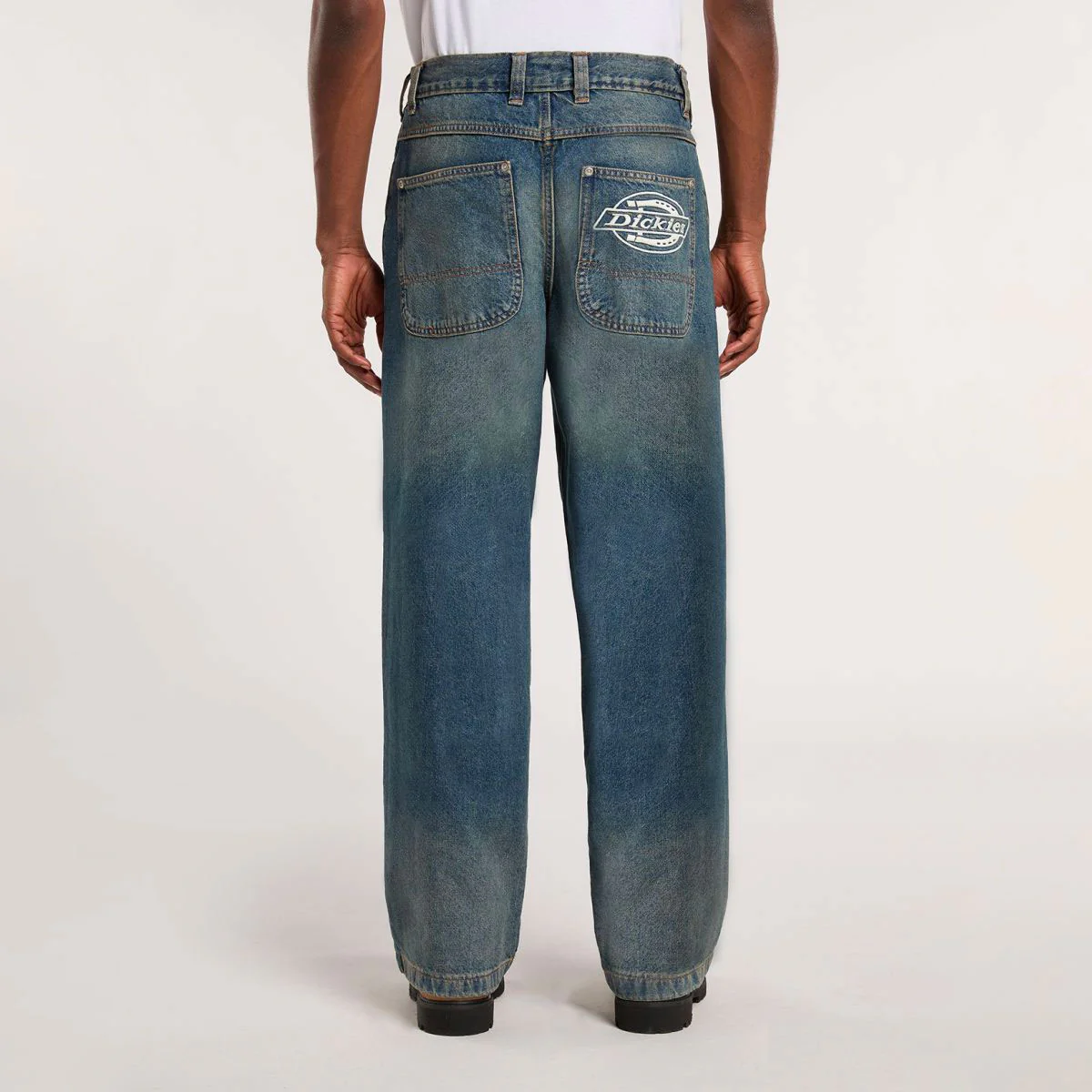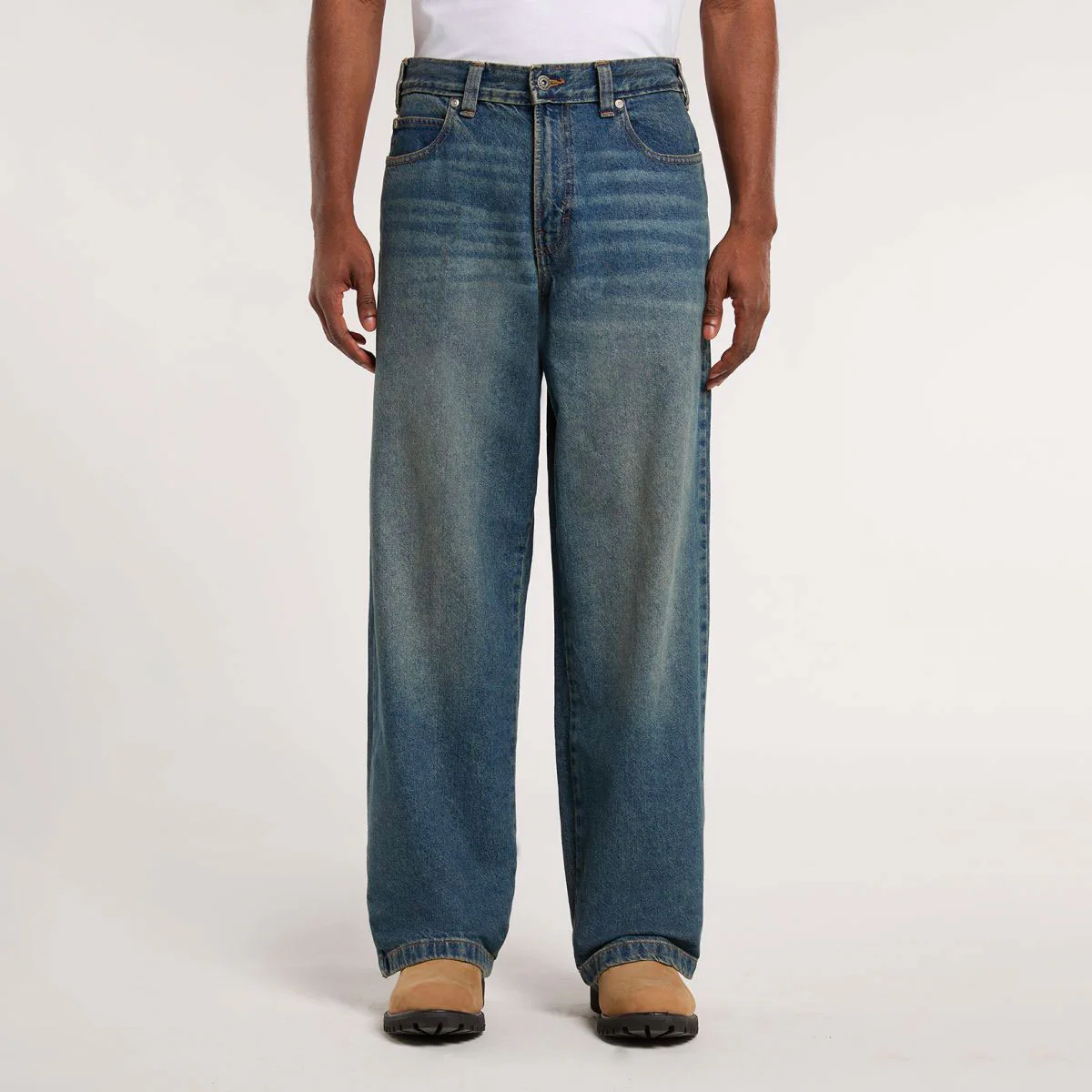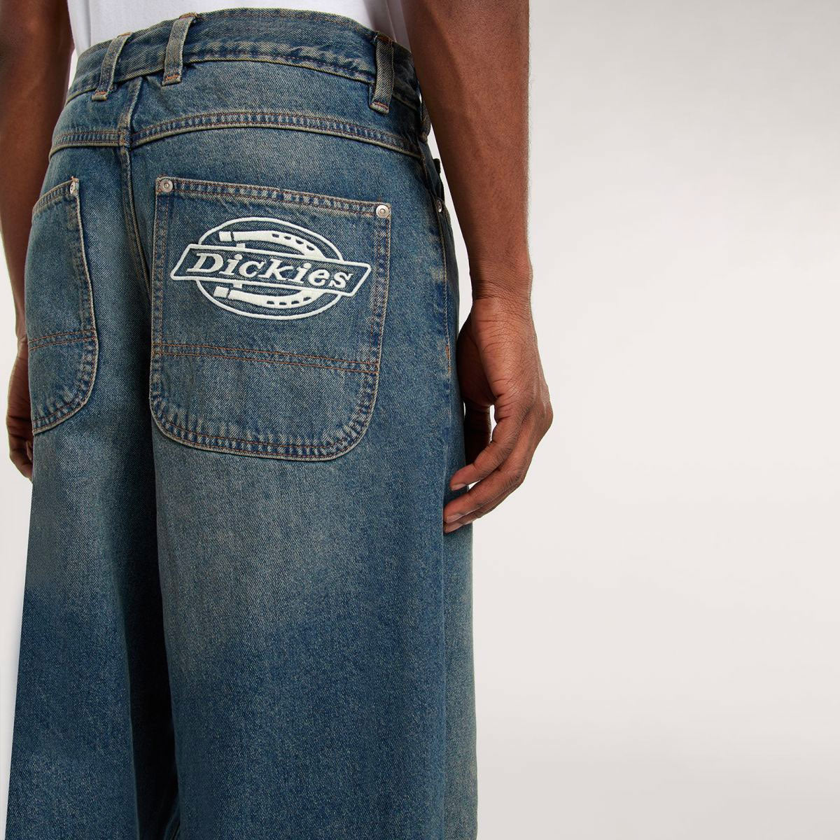 Jean coupe baggy en coton. Braguette à boutons et fermeture éclair, deux poches avant et arrière.