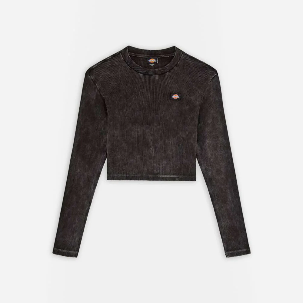 T-shirt manches longues en coton côtelé avec tissu teint à l’acide. Patch logo Dickies cousu sur la poitrine.
