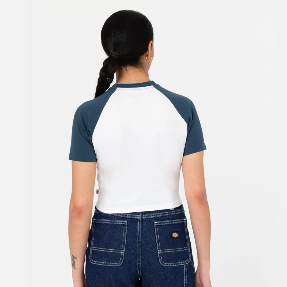 Qui dit style décontracté dit T-shirt à manches raglan. Avec ses manches contrastées inspirées des modèles de baseball et sa coupe courte ajustée, ce T-shirt à manches courtes pour femme nous ramène quelques année en arrière.