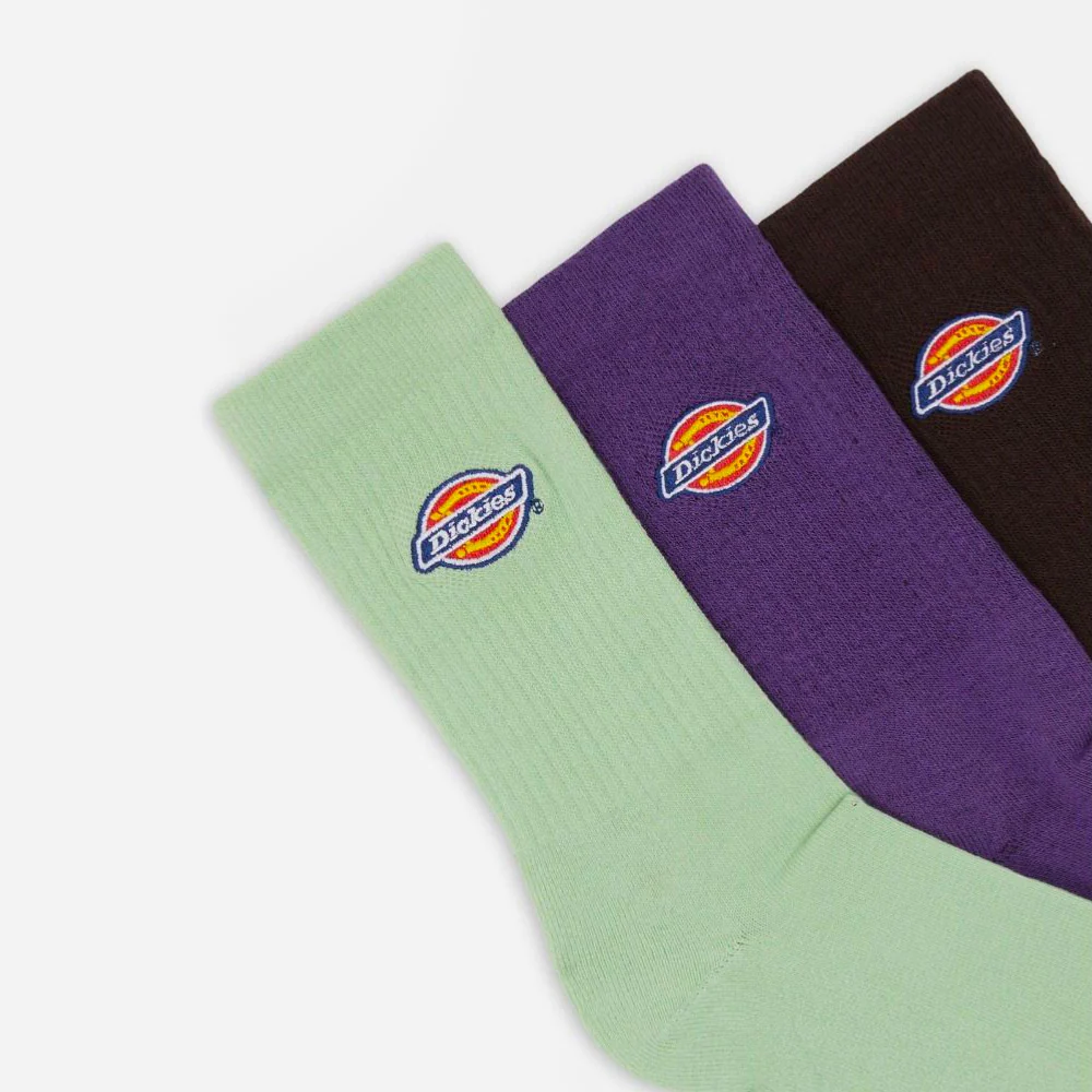 Pack de trois paires de chaussettes Dickies authentiques avec logo brodé sur la cheville et fabriquées à partir d’un mélange de poly-coton de haute qualité.